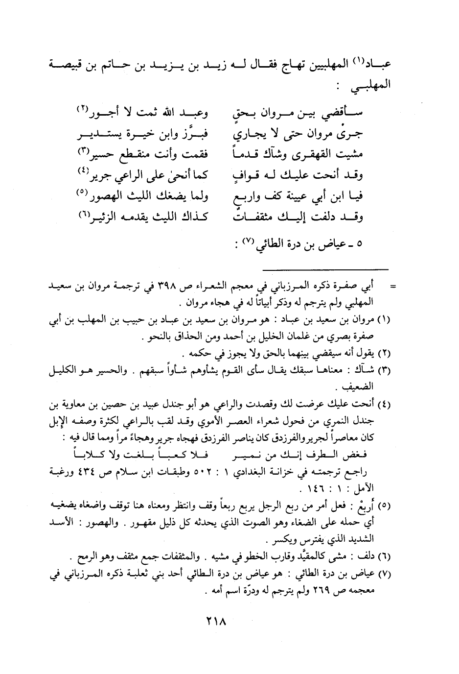 عباد «1» المهلبيين تهاج فقال له زيد بن يزيد بن حاتم بن قبيصة المهلبي: