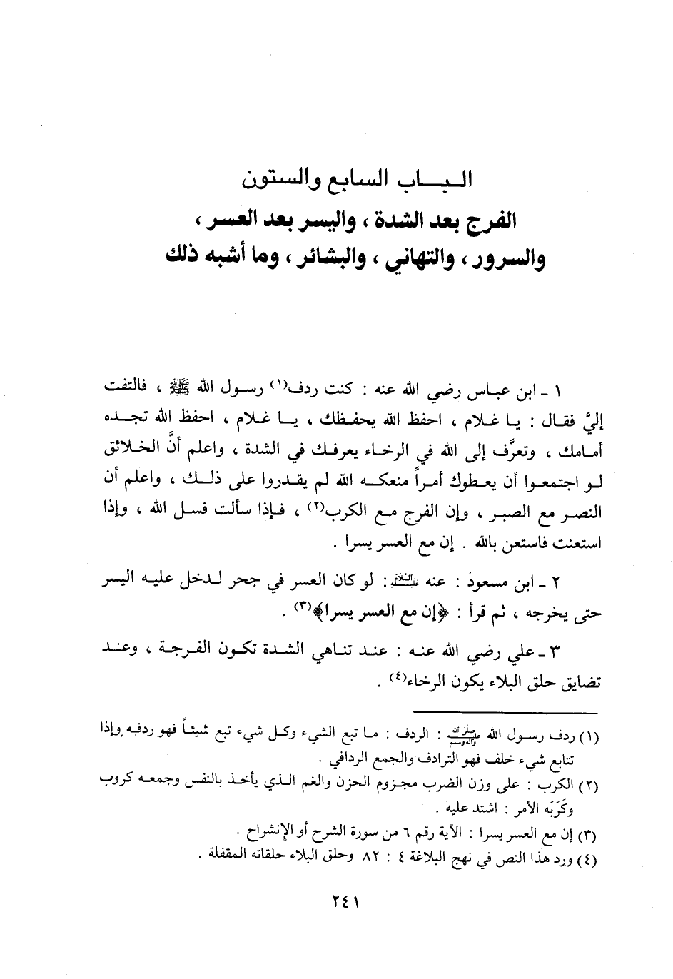 الباب السابع والستون الفرج بعد الشدة، واليسر بعد العسر، والسرور، والتهاني، والبشائر، وما أشبه ذلك
