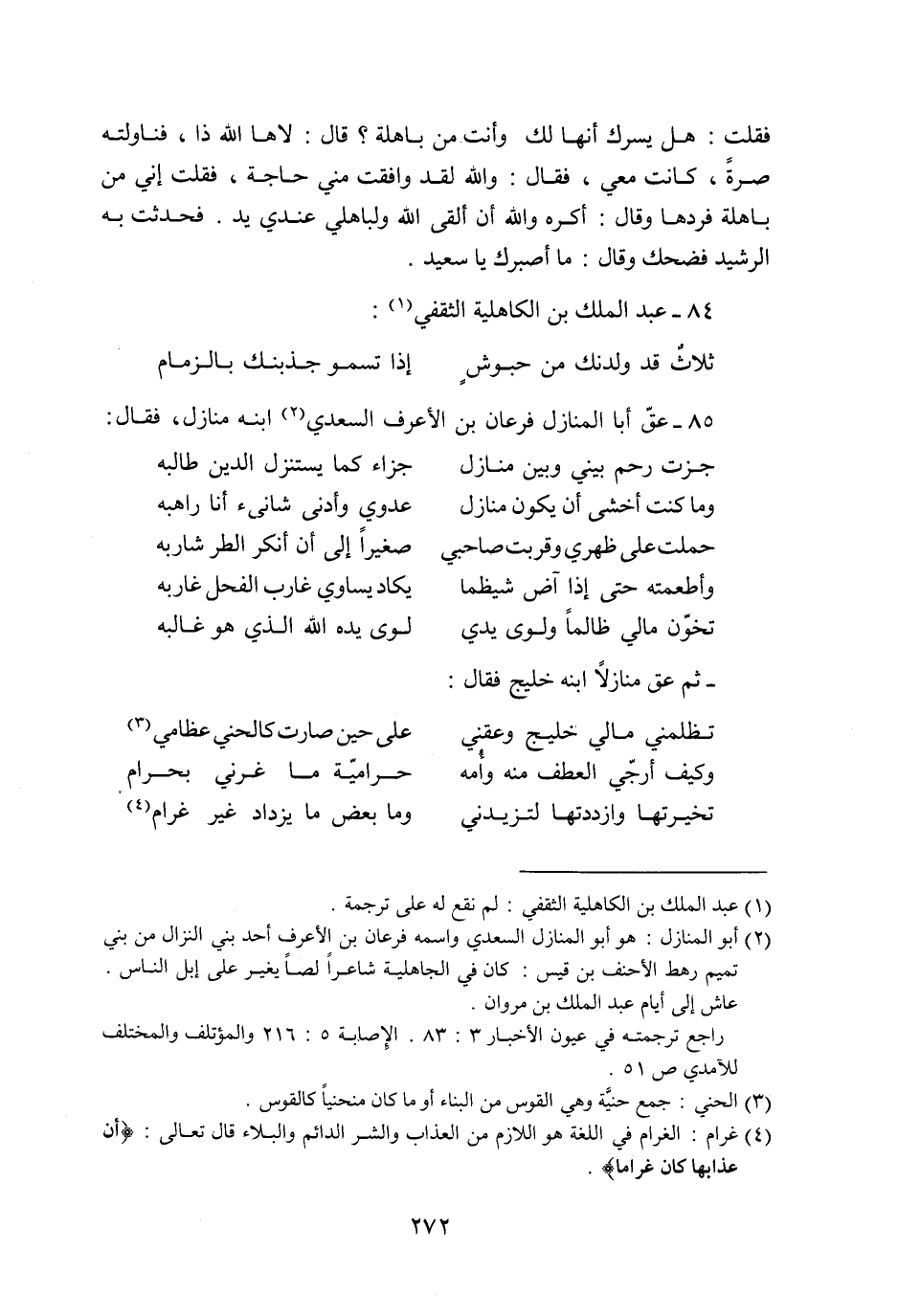 85- عقّ أبا المنازل فرعان بن الأعرف السعدي «2» ابنه منازل، فقال: