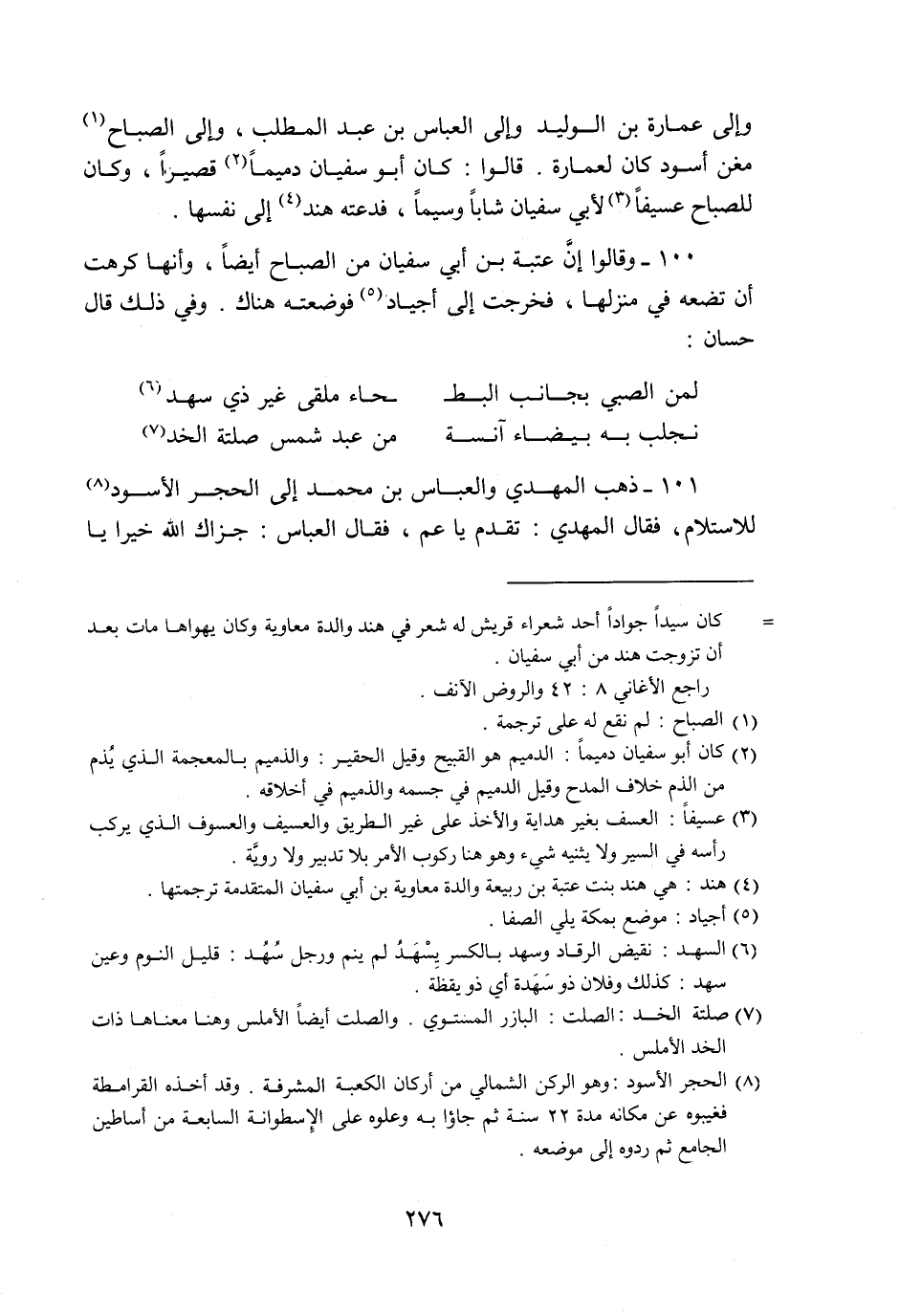 100- وقالوا إنّ عتبة بن أبي سفيان من الصباح أيضا، وأنها كرهت أن تضعه في منزلها، فخرجت إلى أجياد «5» فوضعته هناك. وفي ذلك قال حسان: