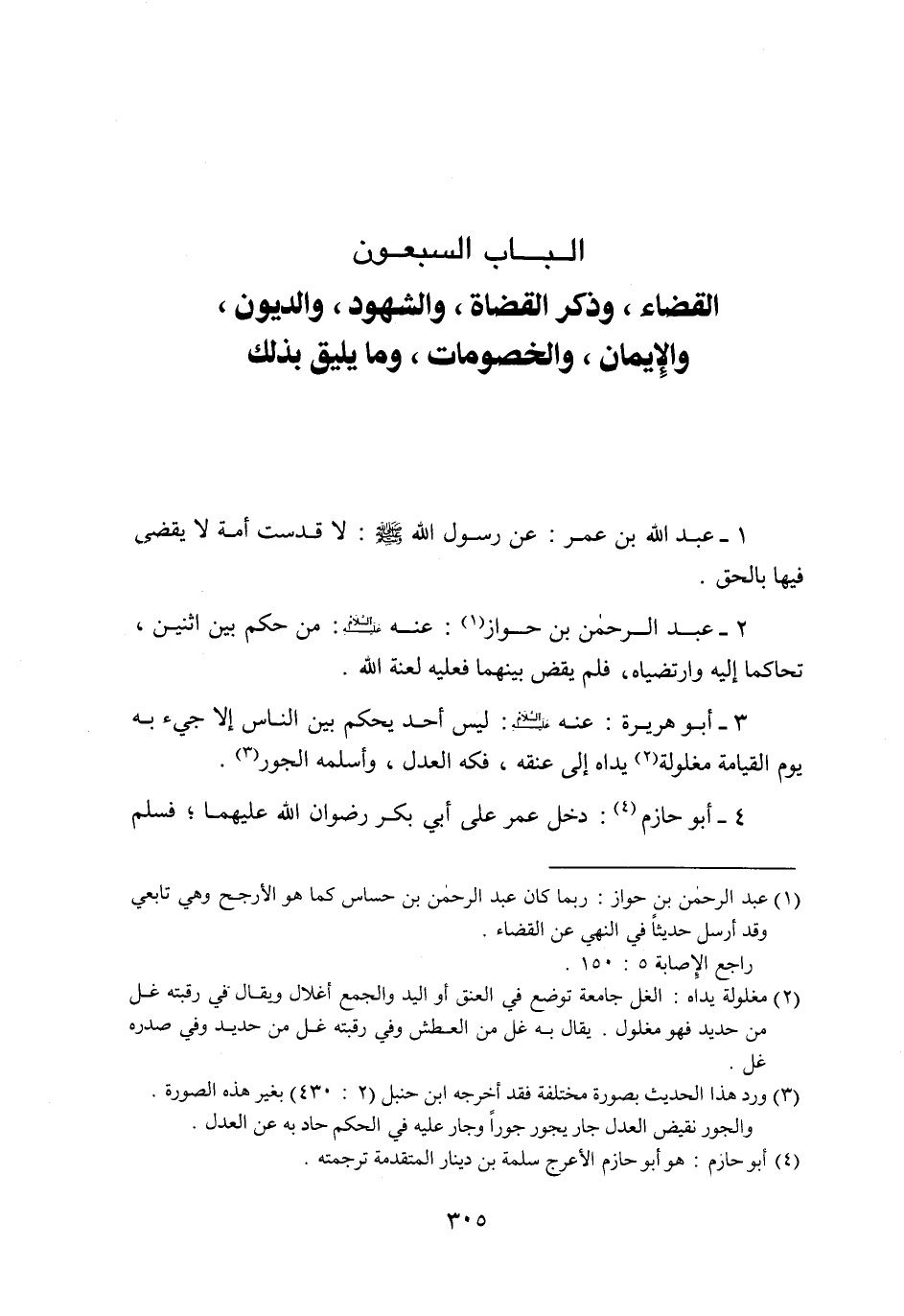 الباب السبعون القضاء، وذكر القضاة، والشهود، والديون، والإيمان، والخصومات، وما يليق بذلك