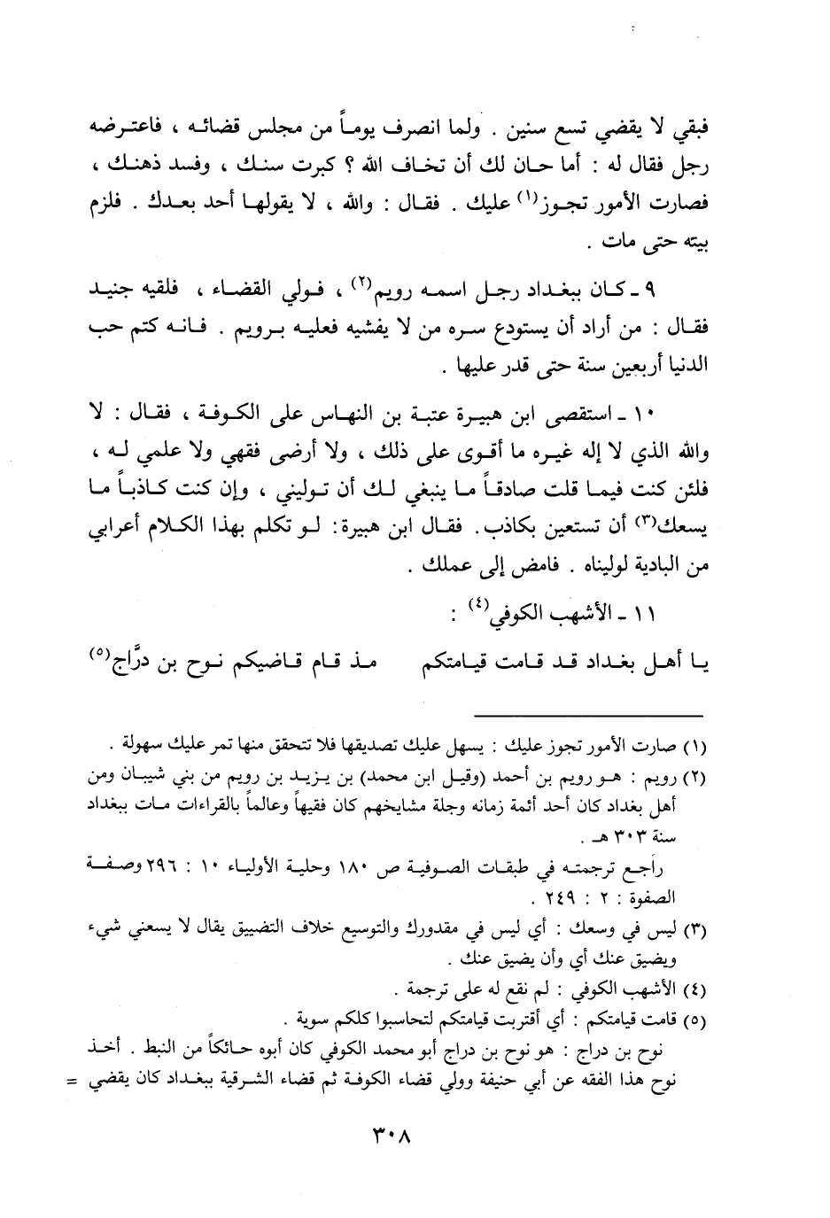 9- كان ببغداد رجل اسمه رويم «2» ، فولي القضاء، فلقيه جنيد فقال: من أراد أن يستودع سره من لا يفشيه فعليه برويم. فانه كتم حب الدنيا أربعين سنة حتى قدر عليها.