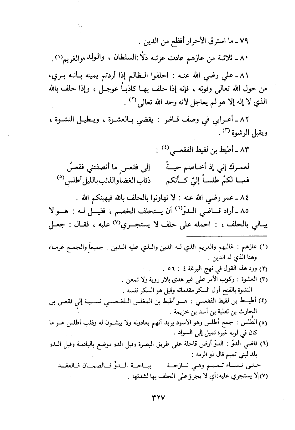 80- ثلاثة من عازهم عادت عزته ذلا: السلطان، والولد، والغريم «1» .
