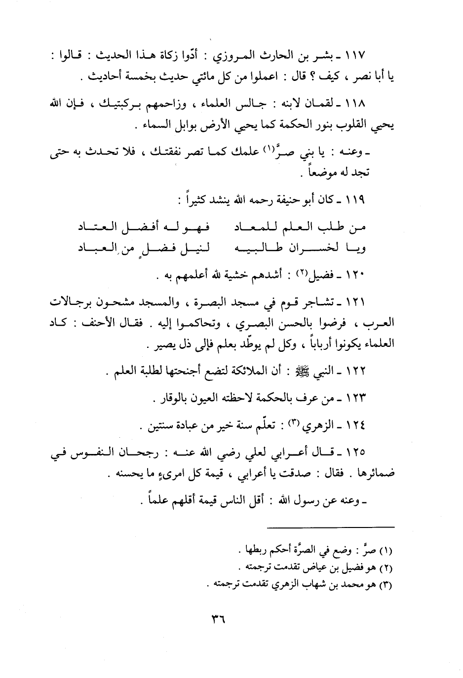 117- بشر بن الحارث المروزي: أدّوا زكاة هذا الحديث: قالوا: