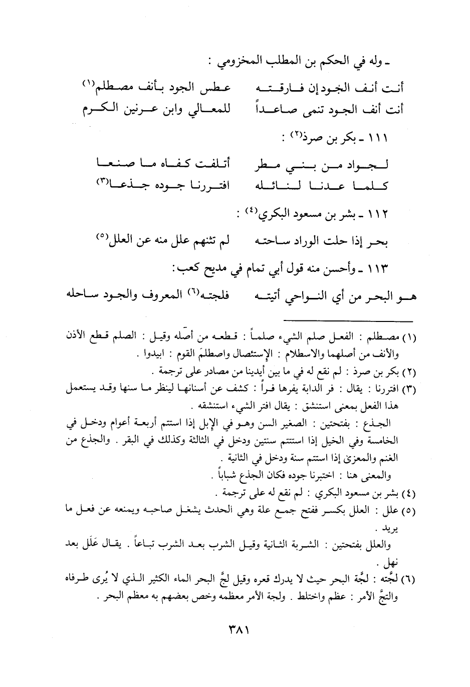 113- وأحسن منه قول أبي تمام في مديح كعب: