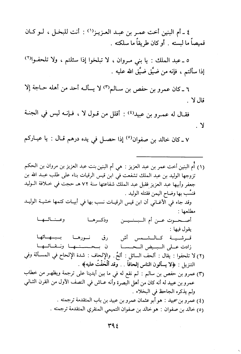 5- عبد الملك: يا بني مروان، لا تبلخوا إذا سئلتم، ولا تلحفوا «2» إذا سألتم، فإنه من ضيّق الله عليه.