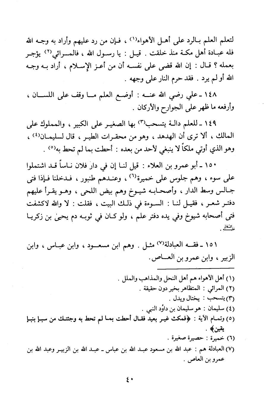148- علي رضي الله عنه: أوضع العلم ما وقف على اللسان، وأرفعه ما ظهر على الجوارح والأركان.