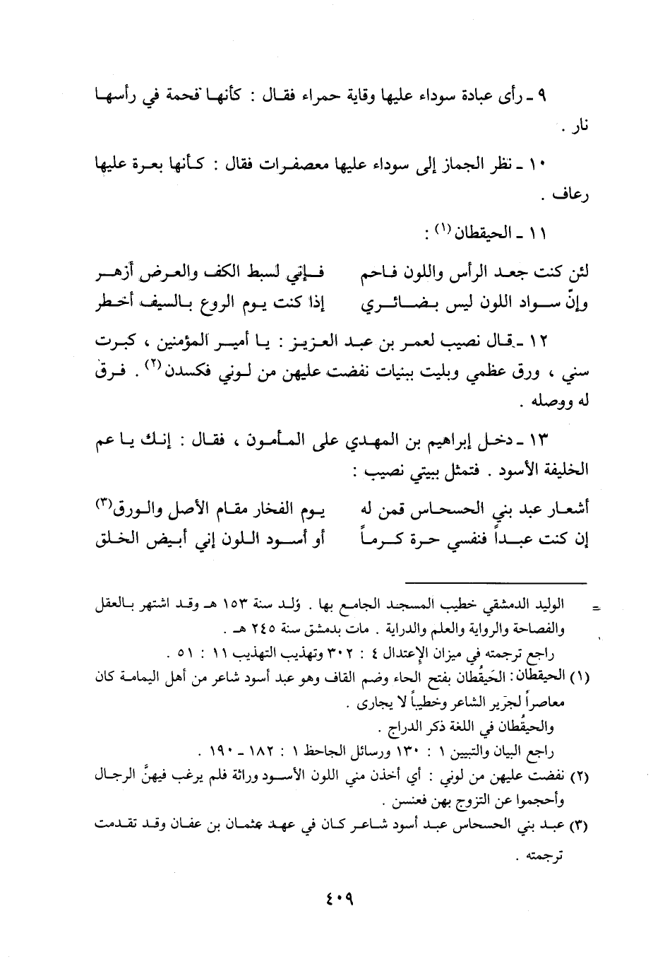 10- نظر الجماز إلى سوداء عليها معصفرات فقال: كأنها بعرة عليها رعاف.