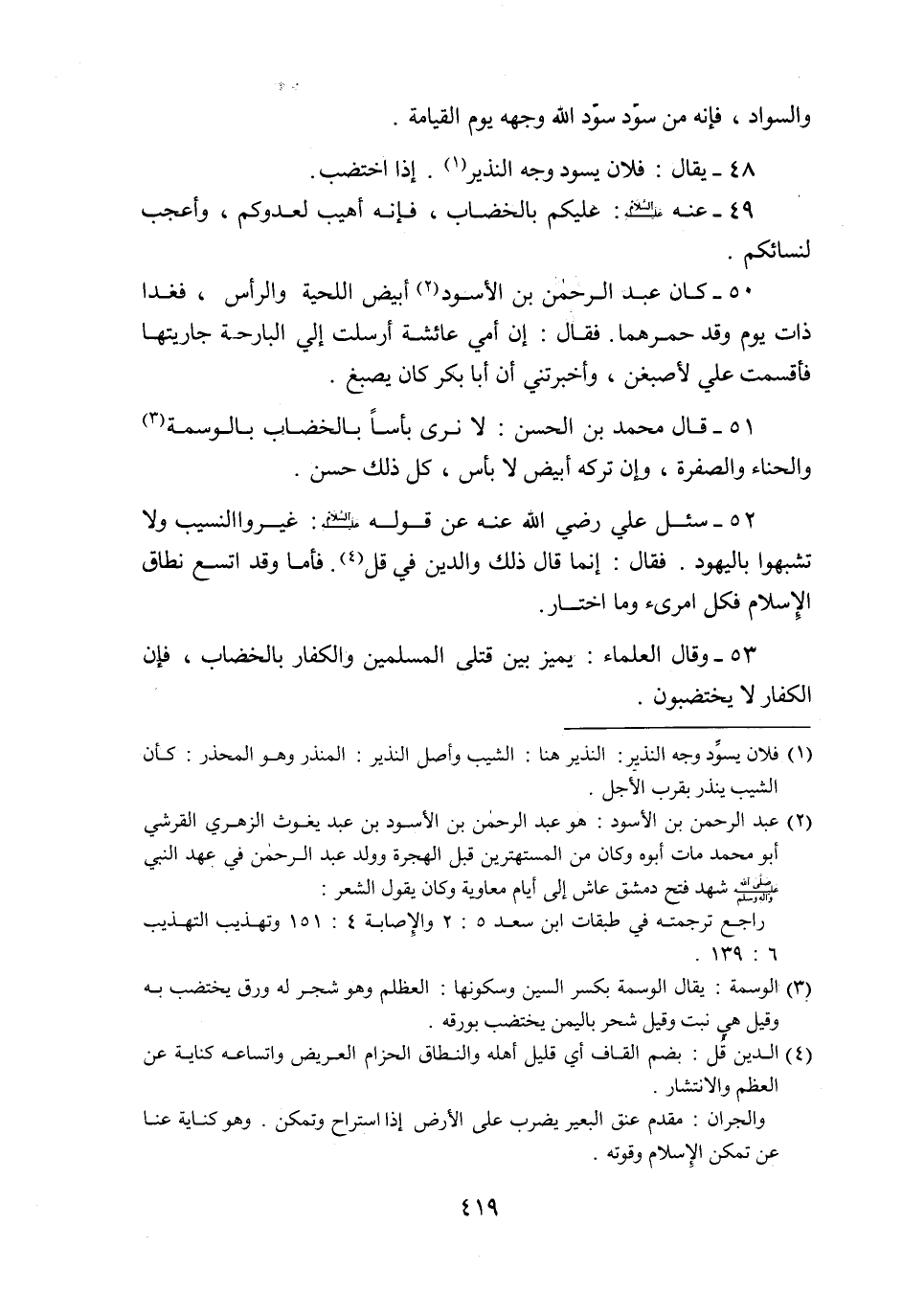 48- يقال: فلان يسود وجه النذير «1» . إذا اختضب.