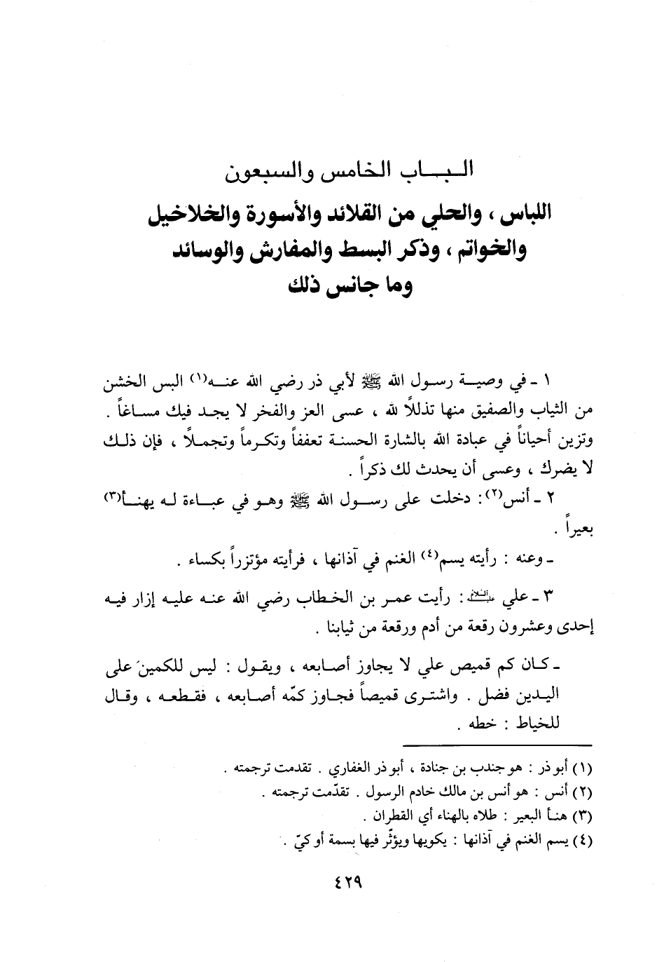 الباب الخامس والسبعون اللباس، والحلي من القلائد والأسورة والخلاخيل والخواتم، وذكر البسط والمفارش والوسائد وما جانس ذلك