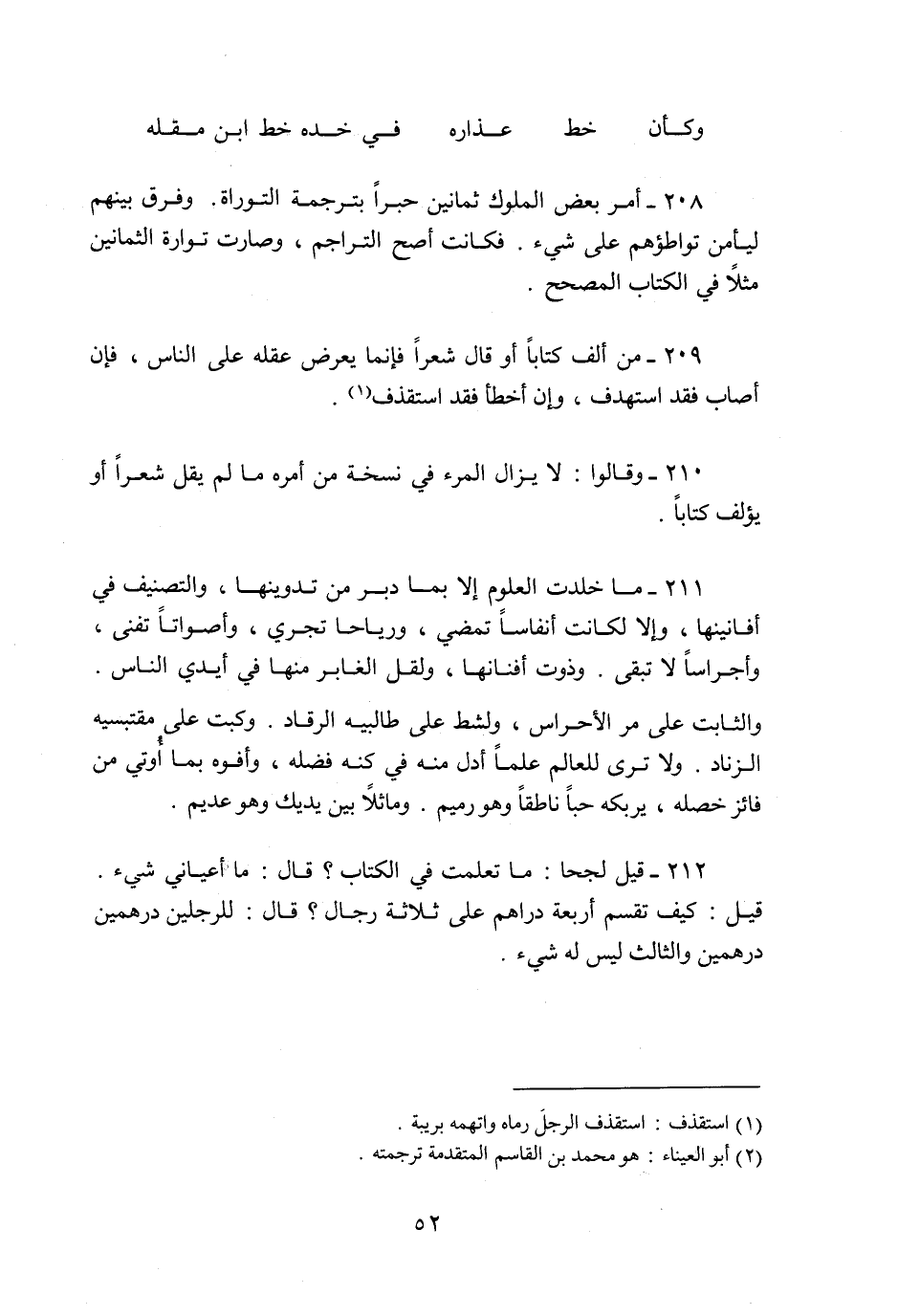 210- وقالوا: لا يزال المرء في نسخة من أمره ما لم يقل شعرا أو يؤلف كتابا.