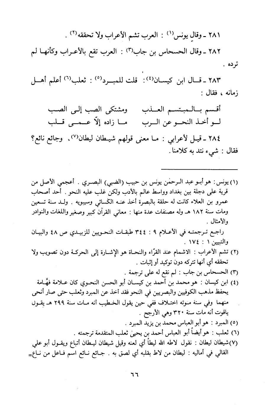 284- قيل لأعرابي: ما معنى قولهم شيطان ليطان «7» ، وجائع نائع؟