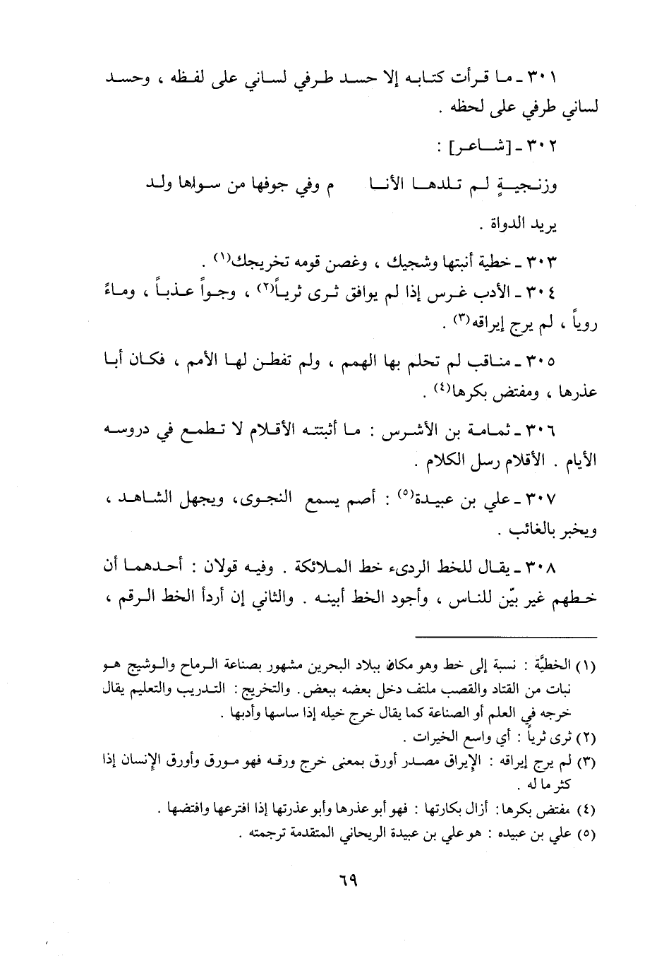307- علي بن عبيدة «5» : أصم يسمع النجوى، ويجهل الشاهد، ويخبر بالغائب.