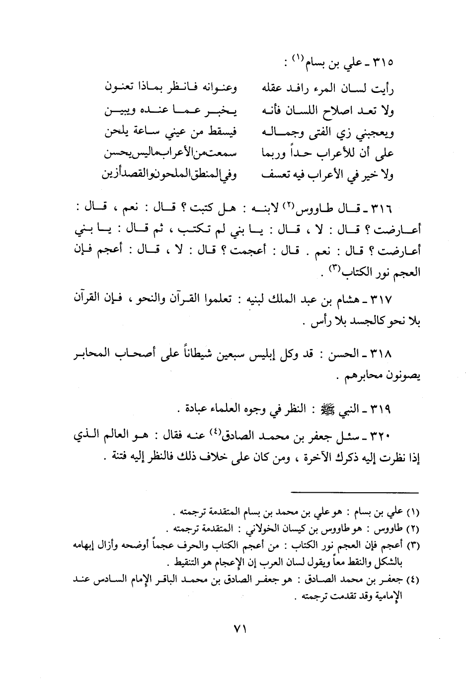 316- قال طاووس «2» لابنه: هل كتبت؟ قال: نعم، قال: