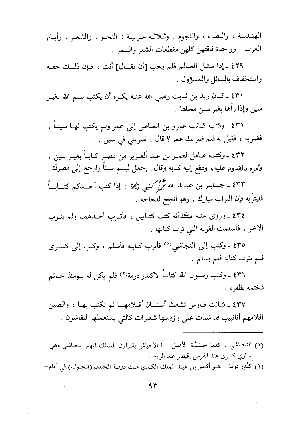437- كانت فارس تشعث أسنان أقلامها ثم تكتب بها، والصين أقلامهم أنانبيب قد شدت على رؤوسها شعيرات كالتي يستعملها النقاشون.