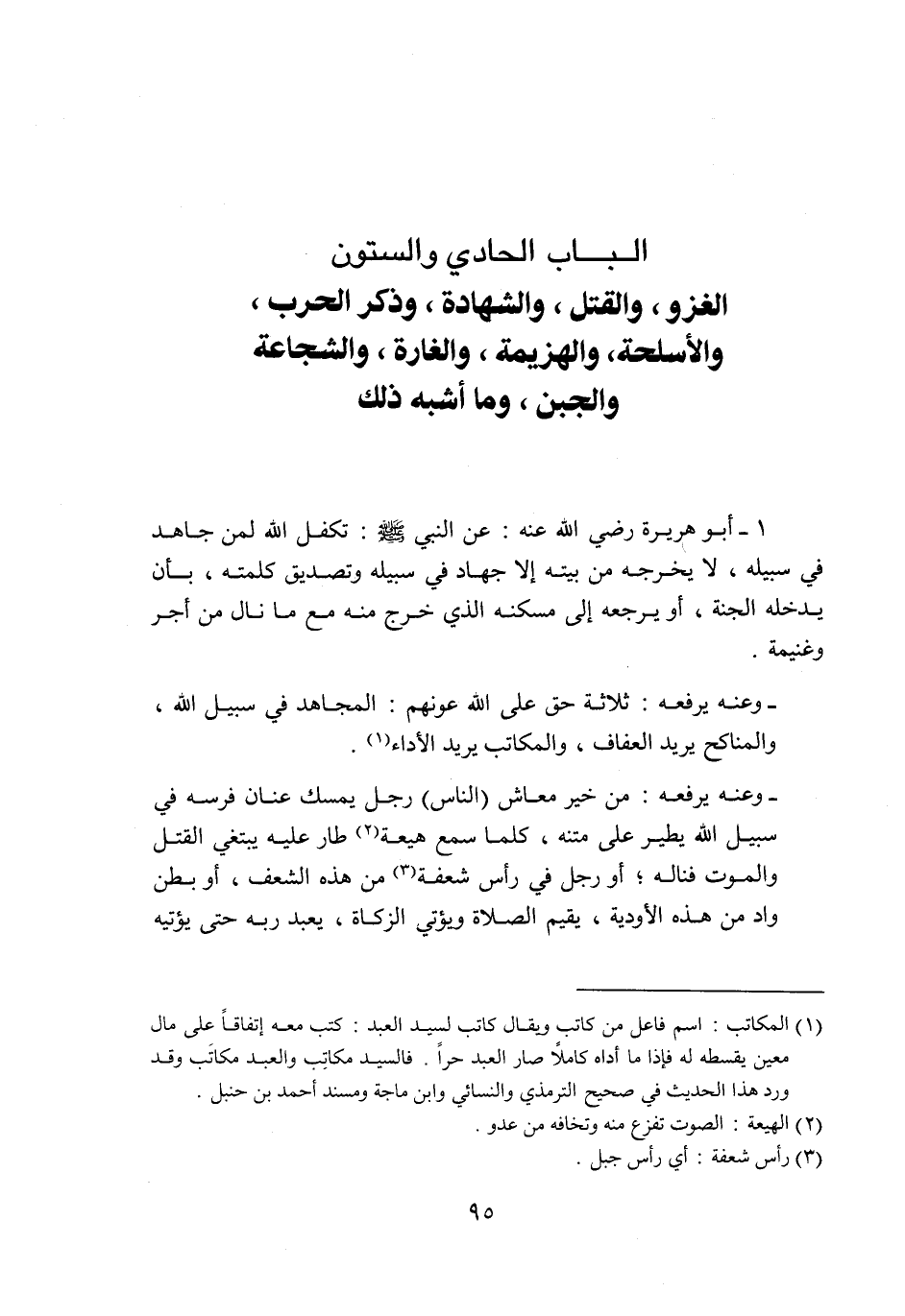 الباب الحادي والستون الغزو، والقتل، والشهادة، وذكر الحرب، والأسلحة، والهزيمة، والغارة، والشجاعة والجبن، وما أشبه ذلك