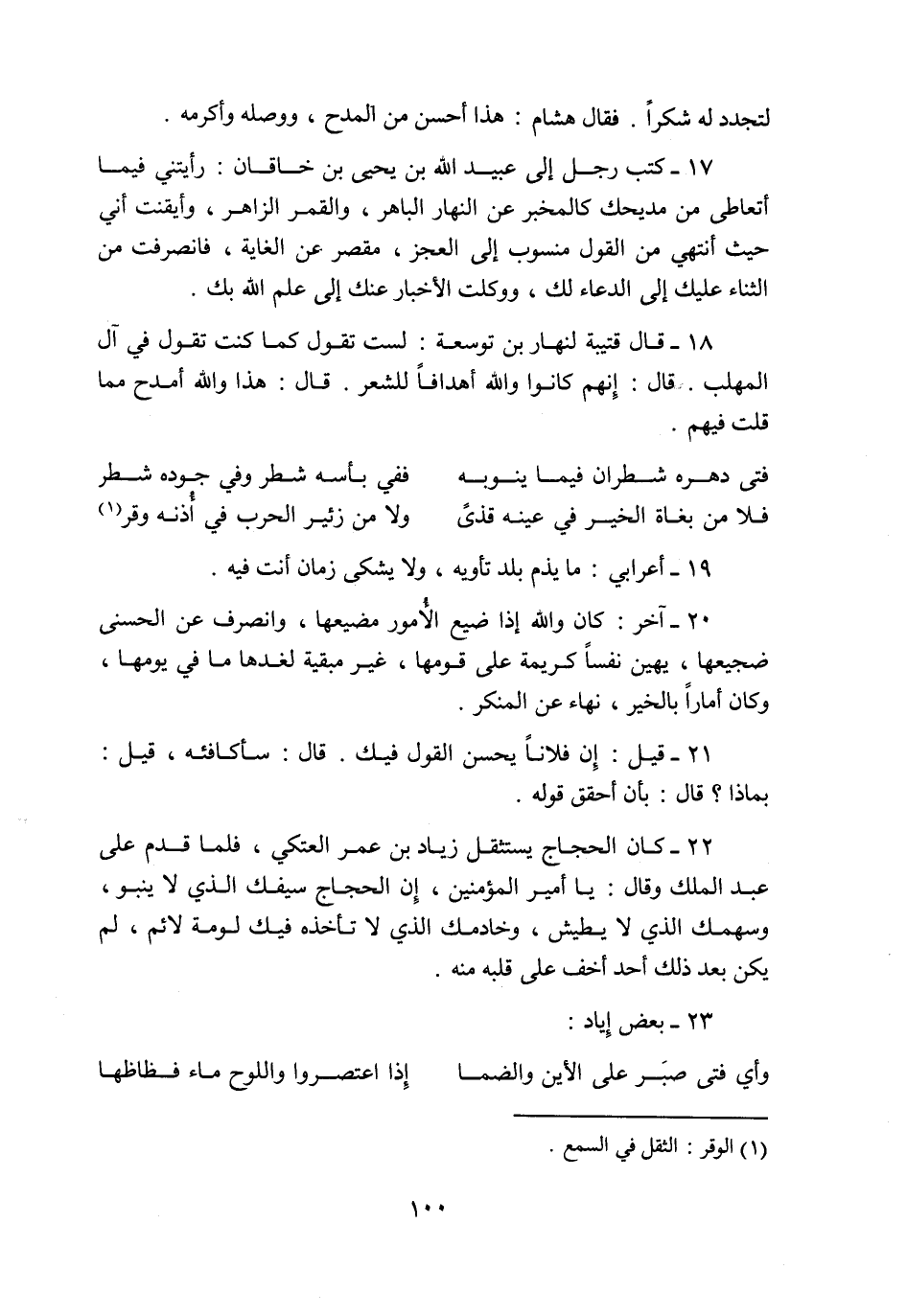18- قال قتيبة لنهار بن توسعة: لست تقول كما كنت تقول في آل المهلب. قال: إنهم كانوا والله أهدافا للشعر. قال: هذا والله أمدح مما قلت فيهم.