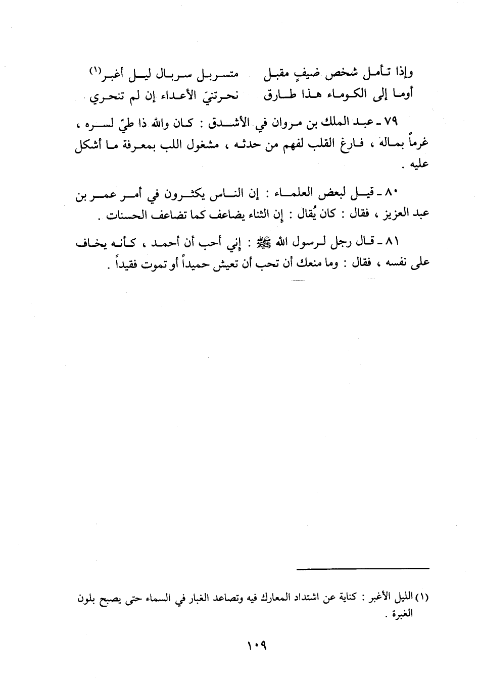 79- عبد الملك بن مروان في الأشدق: كان والله ذا طيّ لسره، غرما بماله، فارغ القلب لفهم من حدثه، مشغول اللب بمعرفة ما أشكل عليه.