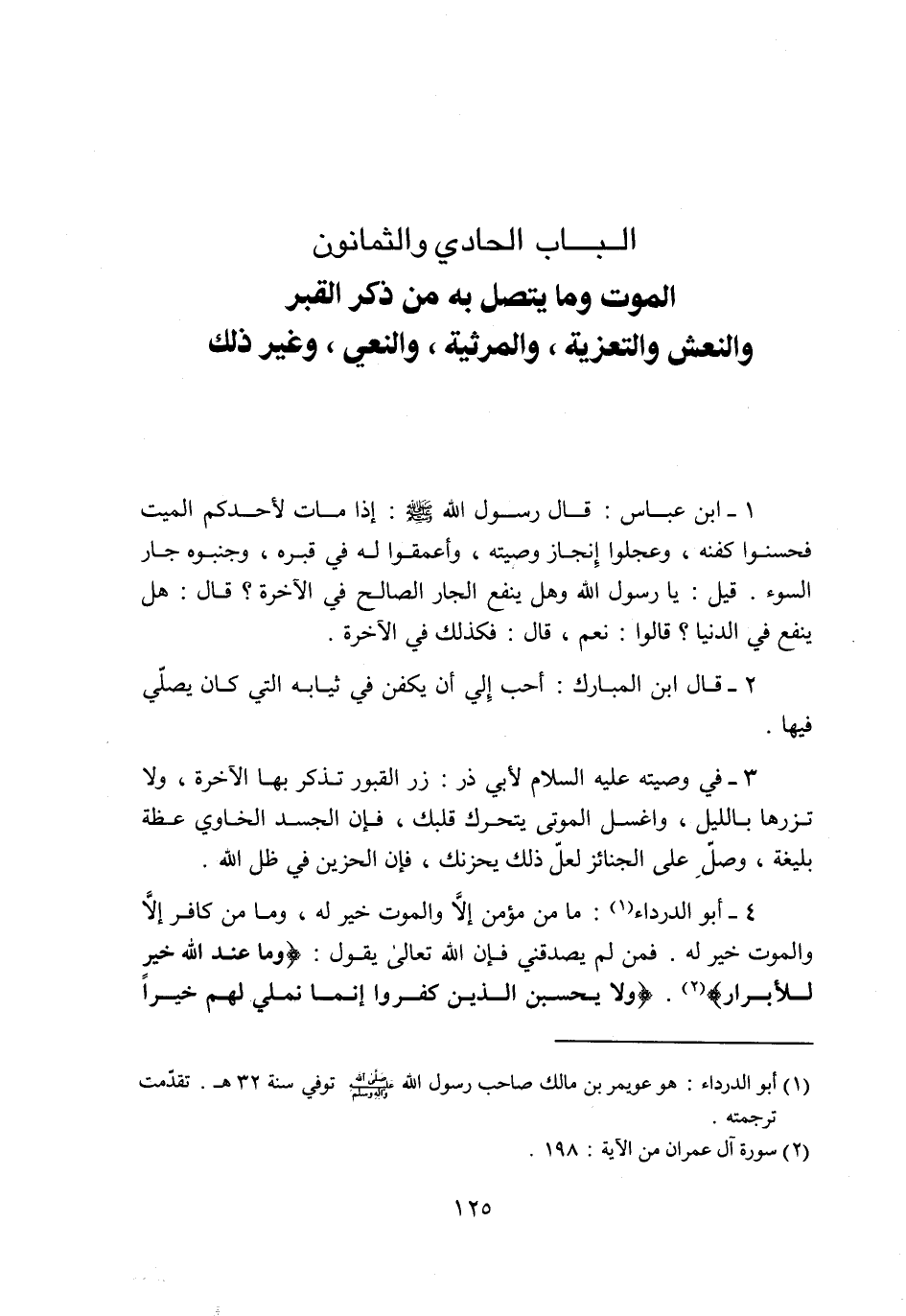 الباب الحادي والثمانون الموت وما يتصل به من ذكر القبر والنعش والتعزية، والمرثية، والنعي، وغير ذلك