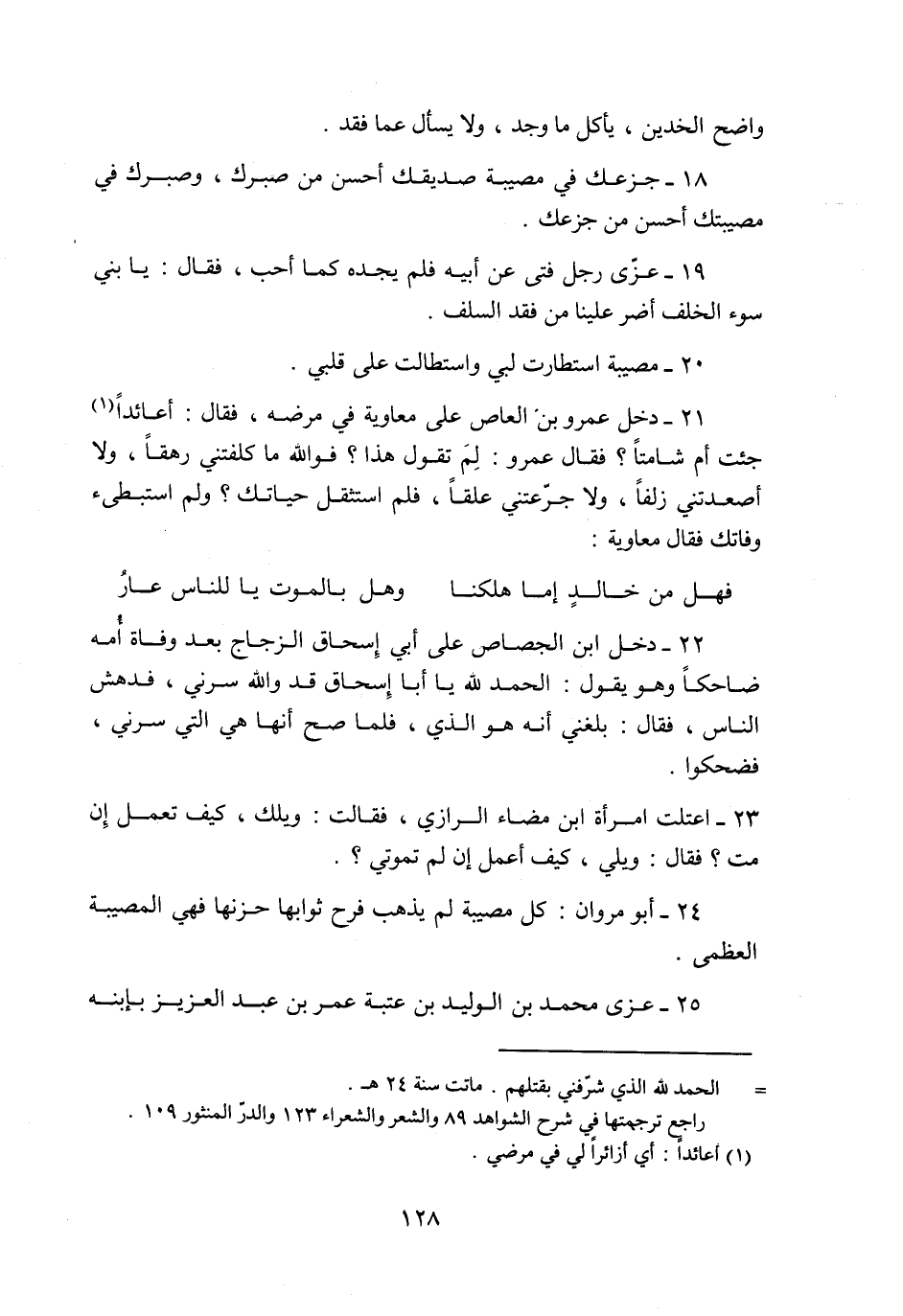 24- أبو مروان: كل مصيبة لم يذهب فرح ثوابها حزنها فهي المصيبة العظمى.
