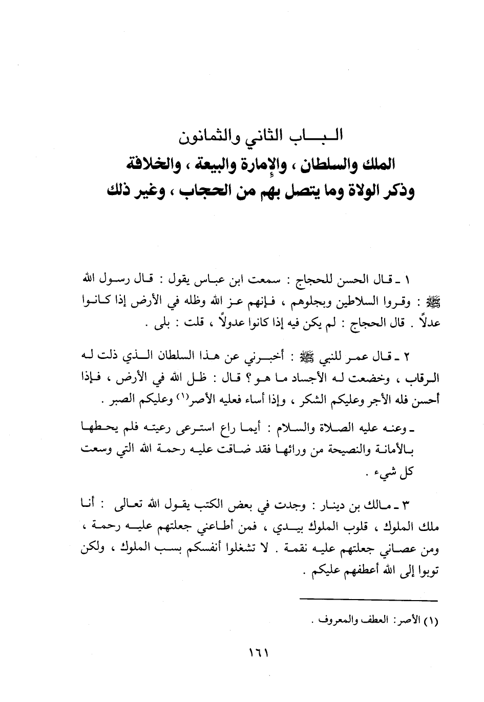 الباب الثاني والثمانون الملك والسلطان، والإمارة والبيعة، والخلافة وذكر الولاة وما يتصل بهم من الحجاب، وغير ذلك