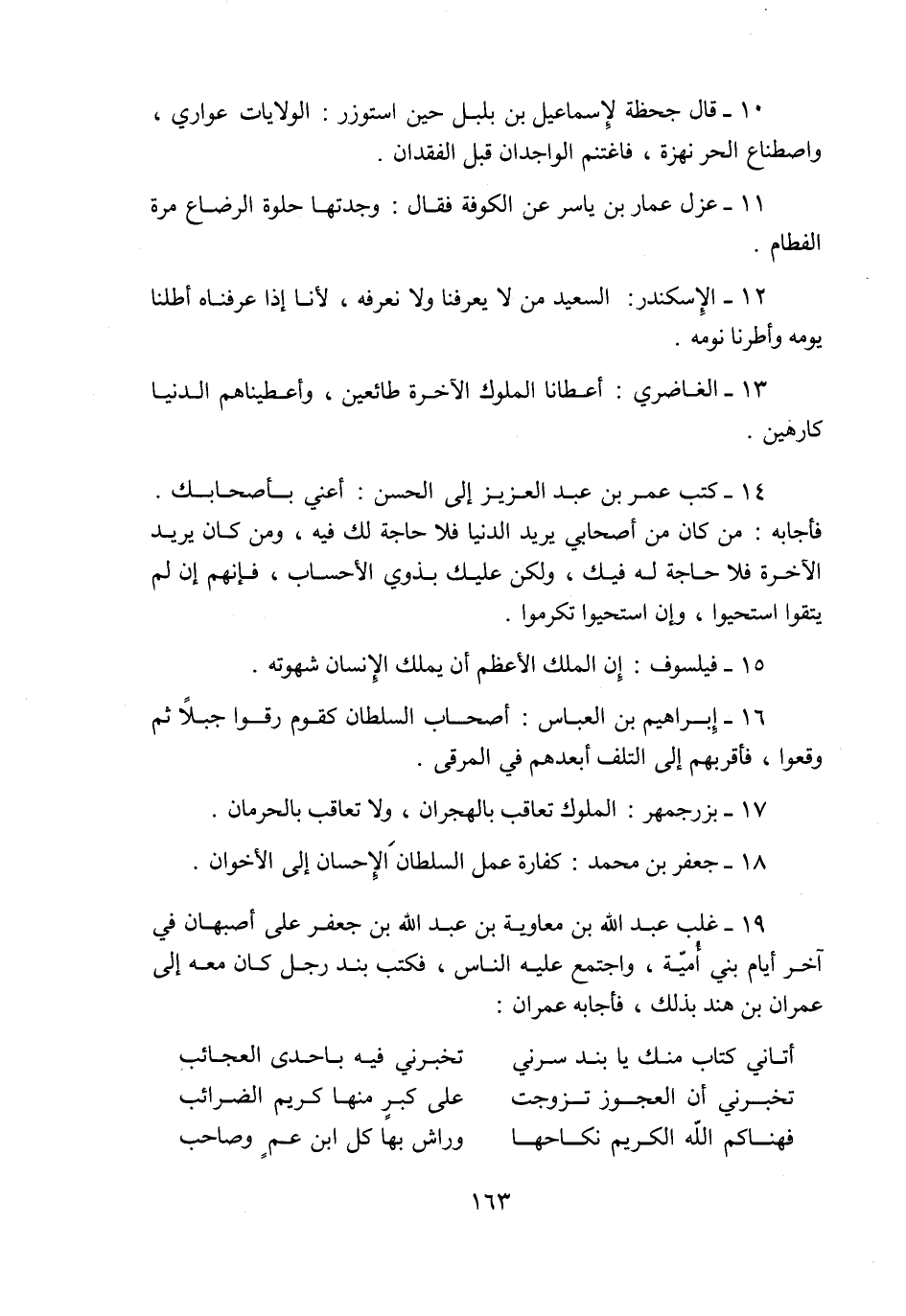 19- غلب عبد الله بن معاوية بن عبد الله بن جعفر على أصبهان في آخر أيام بني أميّة، واجتمع عليه الناس، فكتب بند رجل كان معه إلى عمران بن هند بذلك، فأجابه عمران: