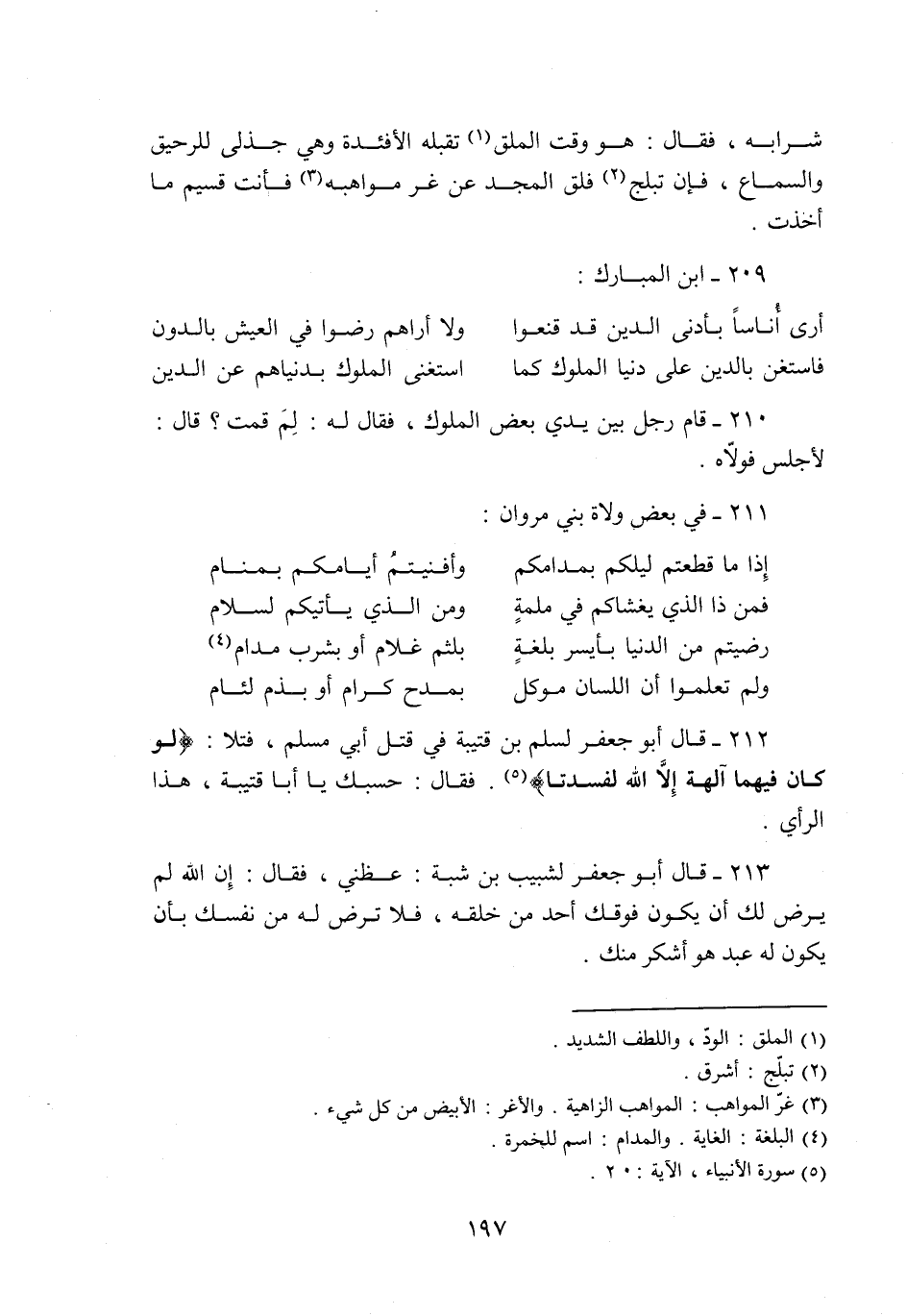 212- قال أبو جعفر لسلم بن قتيبة في قتل أبي مسلم، فتلا: لَوْ كانَ فِيهِما آلِهَةٌ إِلَّا اللَّهُ لَفَسَدَتا