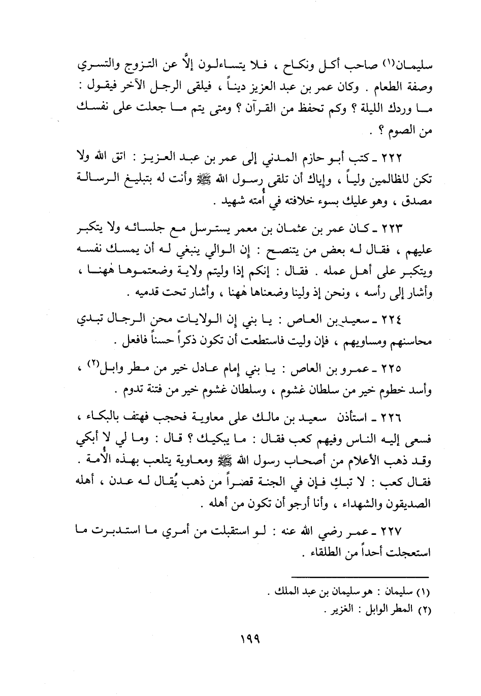 سليمان «1» صاحب أكل ونكاح، فلا يتساءلون إلّا عن التزوج والتسري وصفة الطعام. وكان عمر بن عبد العزيز دينا، فيلقى الرجل الآخر فيقول: