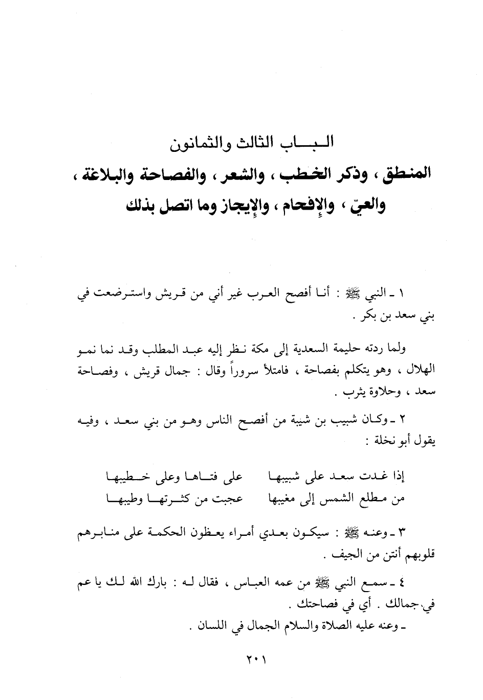 الباب الثالث والثمانون المنطق، وذكر الخطب، والشعر، والفصاحة والبلاغة، والعيّ، والإفحام، والإيجاز وما اتصل بذلك