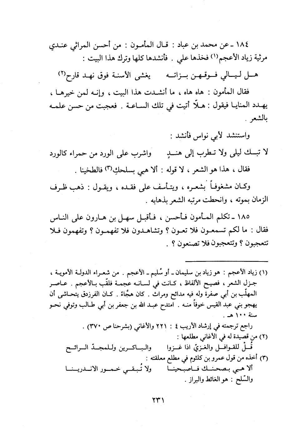184- عن محمد بن عباد: قال المأمون: من أحسن المراثي عندي مرثية زياد الأعجم «1» فخذها علي. فأنشدها كلها وترك هذا البيت: