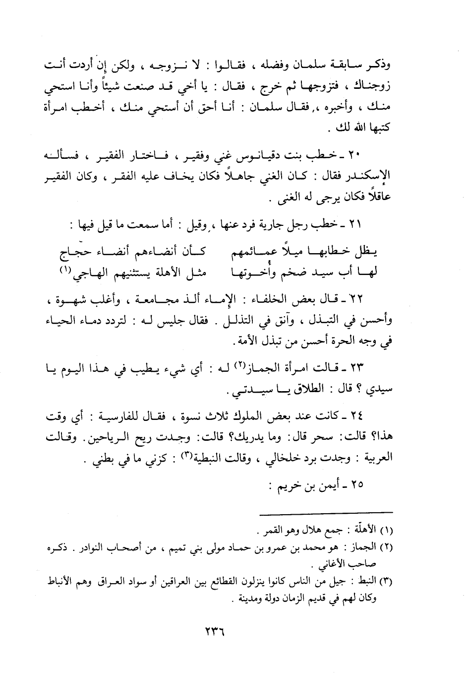 23- قالت امرأة الجماز «2» له: أي شيء يطيب في هذا اليوم يا سيدي؟ قال: الطلاق يا سيدتي.