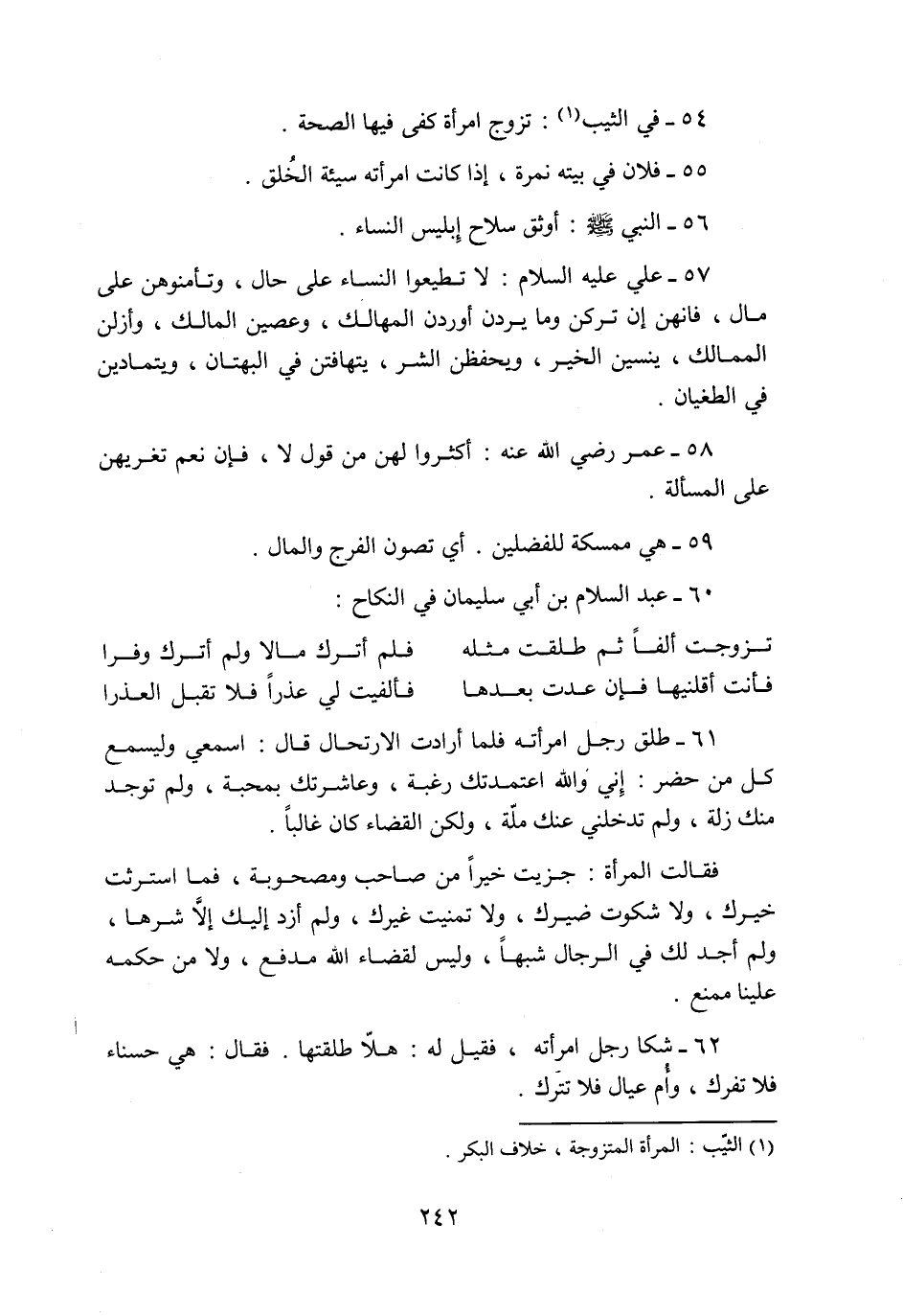 58- عمر رضي الله عنه: أكثروا لهن من قول لا، فإن نعم تغريهن على المسألة.