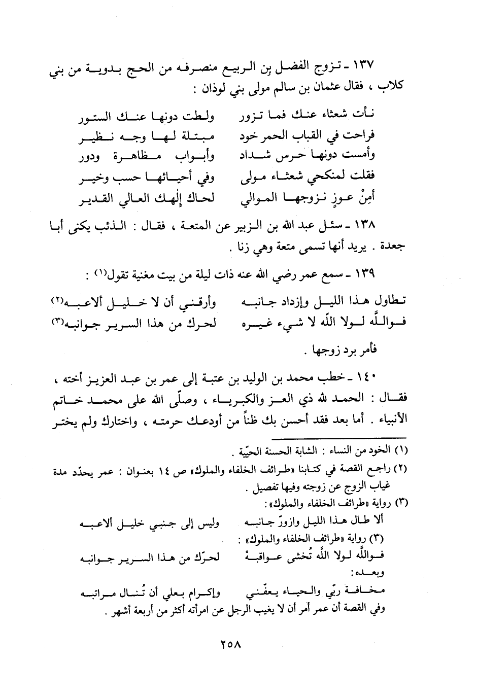 137- تزوج الفضل بن الربيع منصرفه من الحج بدوية من بني كلاب، فقال عثمان بن سالم مولى بني لوذان: