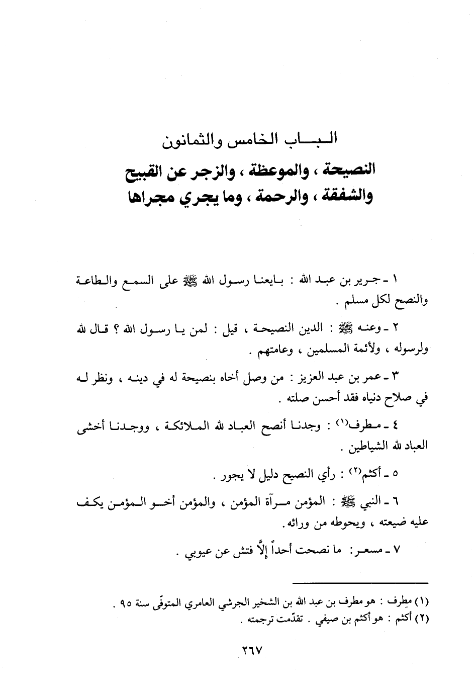 الباب الخامس والثمانون النصيحة، والموعظة، والزجر عن القبيح والشفقة، والرحمة، وما يجري مجراها