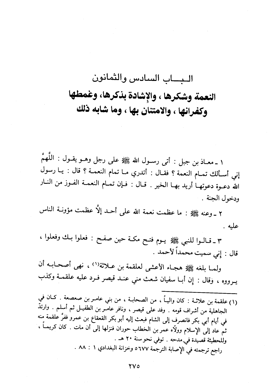 الباب السادس والثمانون النعمة وشكرها، والإشادة بذكرها، وغمطها وكفرانها، والامتنان بها، وما شابه ذلك