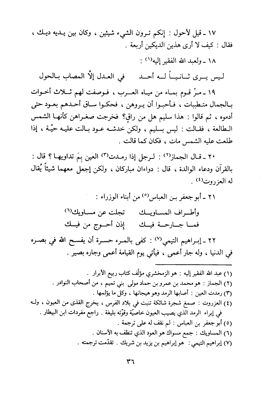 17- قيل لأحول: إنكم ترون الشيء شيئين، وكان بين يديه ديك، فقال: كيف لا أرى هذين الديكين أربعة.