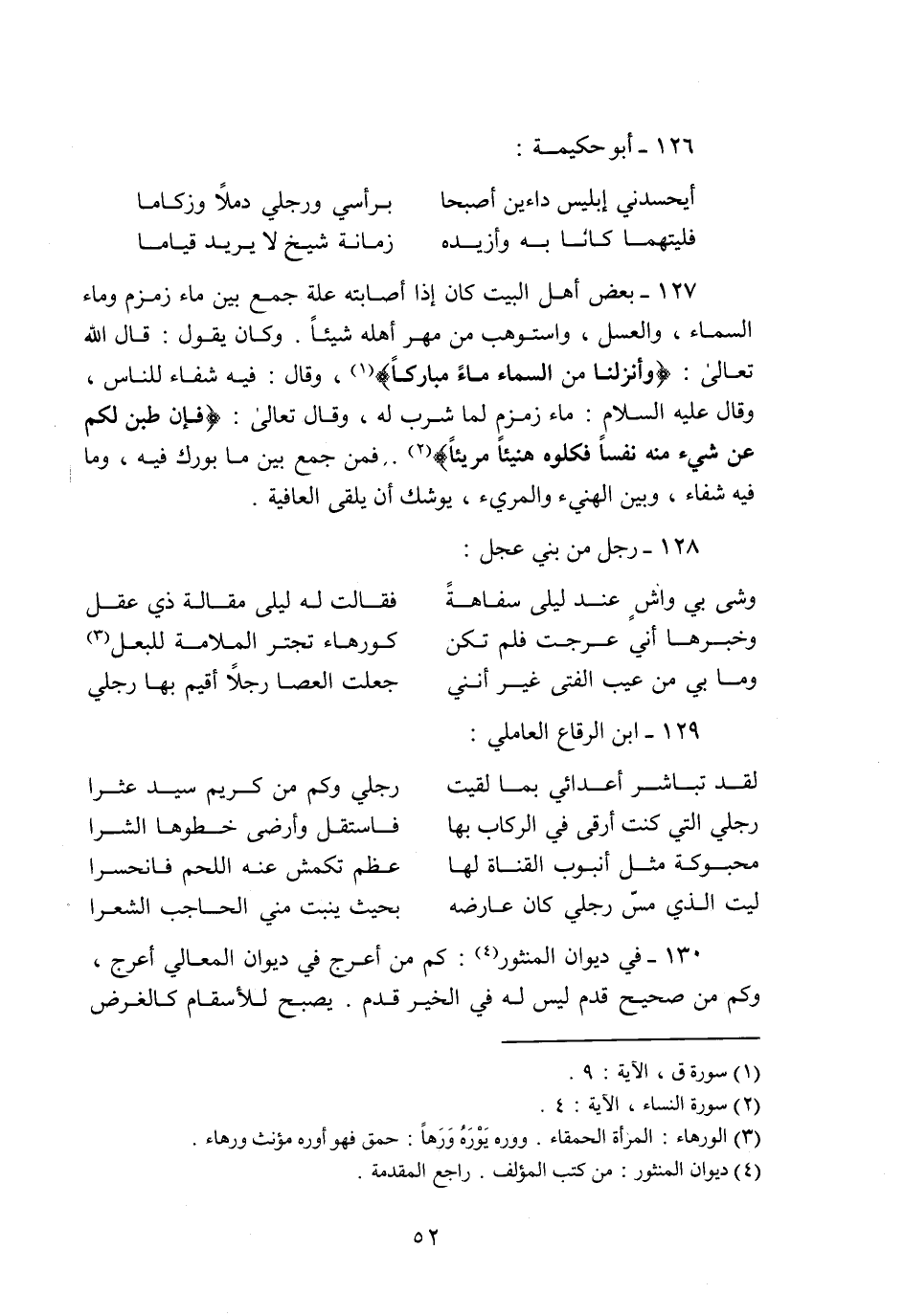 130- في ديوان المنثور «4» : كم من أعرج في ديوان المعالي أعرج، وكم من صحيح قدم ليس له في الخير قدم. يصبح للأسقام كالغرض