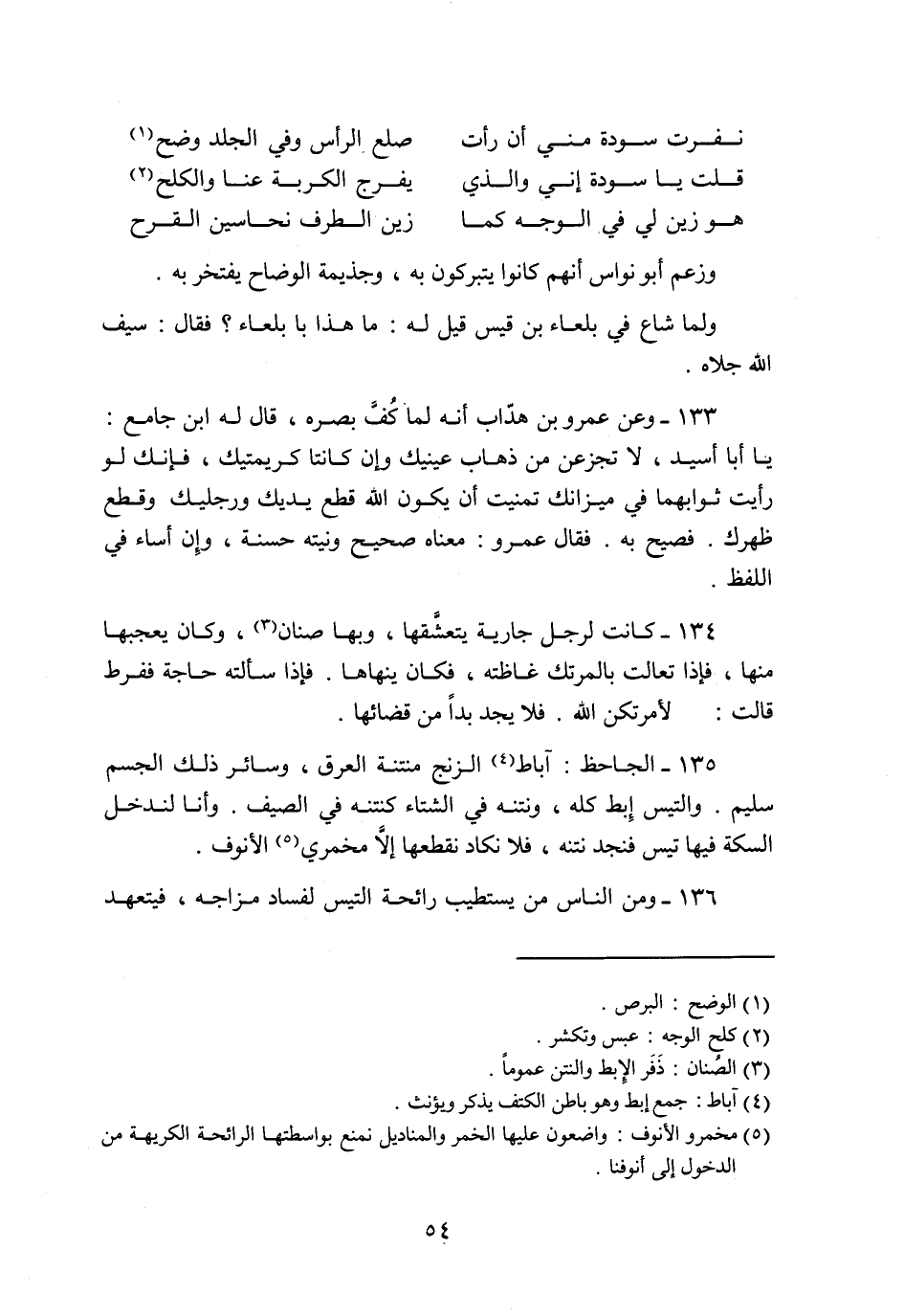 136- ومن الناس من يستطيب رائحة التيس لفساد مزاجه، فيتعهد