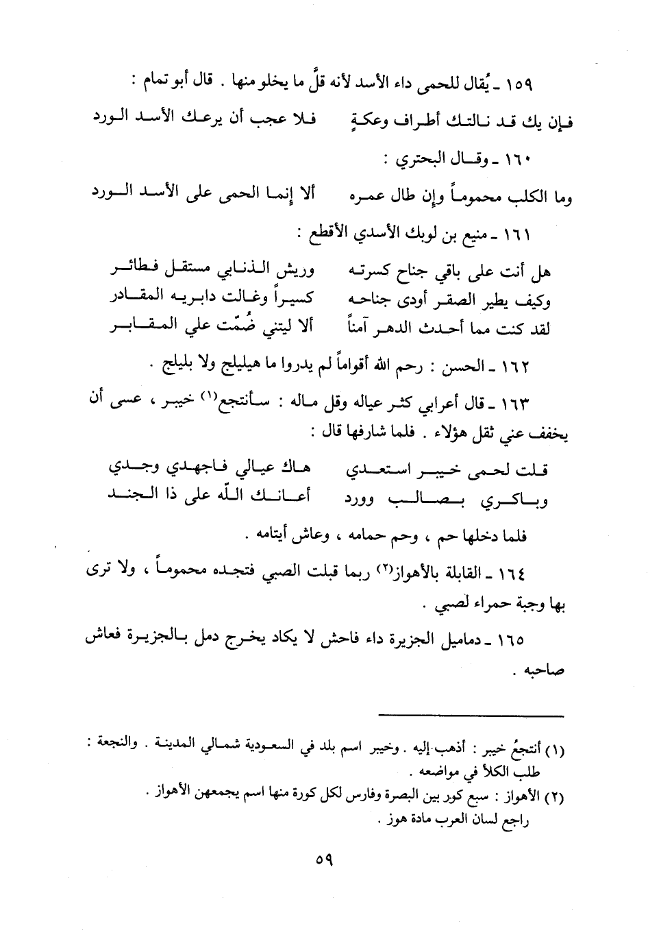 159- يقال للحمى داء الأسد لأنه قلّ ما يخلو منها. قال أبو تمام: