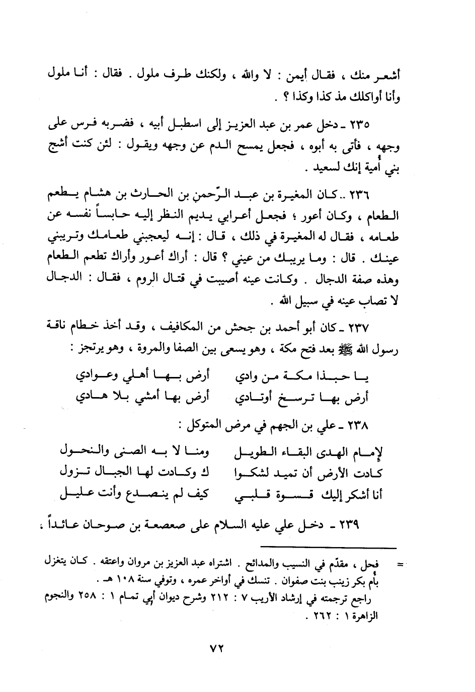 237- كان أبو أحمد بن جحش من المكافيف، وقد أخذ خطام ناقة رسول الله صلّى الله عليه وسلّم بعد فتح مكة، وهو يسعى بين الصفا والمروة، وهو يرتجز: