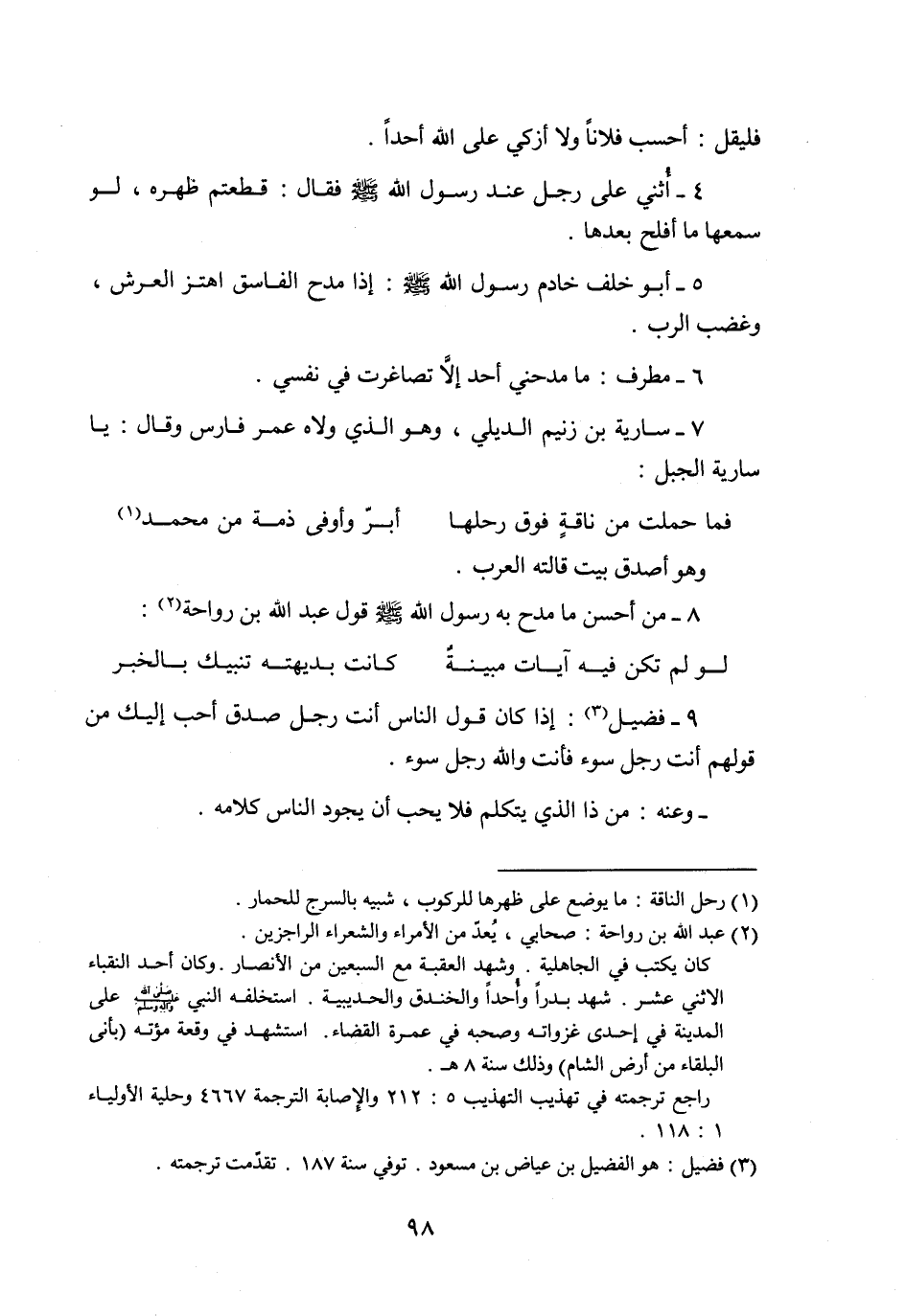 4- أثني على رجل عند رسول الله صلّى الله عليه وسلّم فقال: قطعتم ظهره، لو سمعها ما أفلح بعدها.