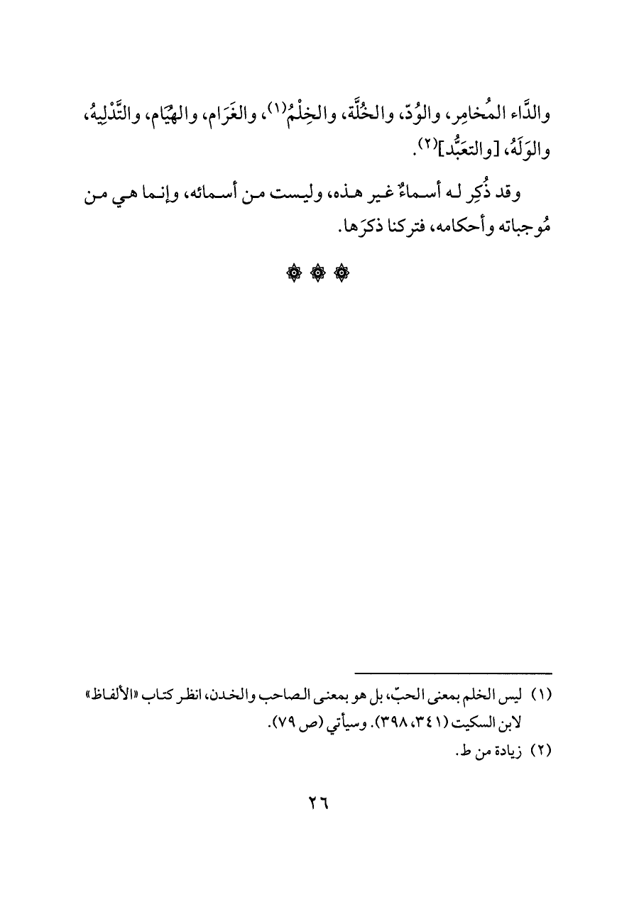 (¬١) ليس الخلم بمعنى الحبّ، بل هو بمعنى الصاحب والخدن، انظر كتاب «الألفاظ» لابن السكيت (٣٤١، ٣٩٨). وسيأتي (ص ٧٩).