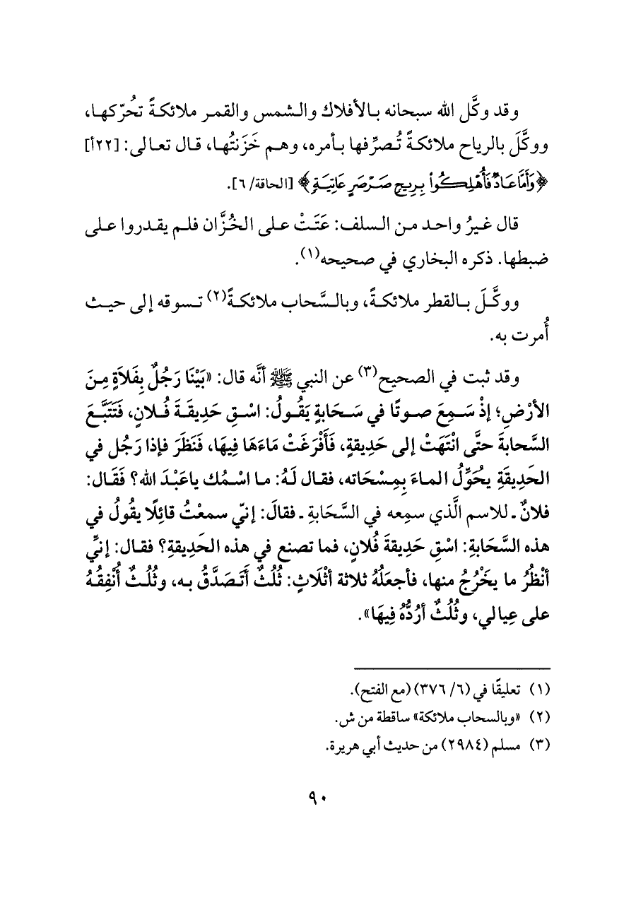 وقد ثبت في الصحيح (¬٣) عن النبي - صلى الله عليه وسلم - أنَّه قال: «بَيْنَا رَجُلٌ بِفَلَاةٍ مِنَ الأرْضِ؛ إذْ سَمِعَ صوتًا في سَحَابةٍ يَقُولُ: اسْقِ حَدِيقَةَ فُلانٍ، فَتَتَبَّعَ السَّحابةَ حتَّى انْتَهَتْ إلى حَدِيقةٍ، فَأَفْرَغَتْ مَاءَهَا فِيهَا، فَنَظَرَ فإذا رَجُل في الحَدِيقَةِ يُحَوِّلُ الماءَ بِمِسْحَاته، فقال لَهُ: ما اسْمُك ياعَبْدَ الله؟ فَقَال: فلانٌ ـ للاسم الَّذي سمِعه في السَّحَابةِ ـ فقالَ: إنّي سمعْتُ قائِلًا يقُولُ في هذه السَّحَابةِ: اسْقِ حَدِيقةَ فُلانٍ، فما تصنع في هذه الحَدِيقةِ؟ فقال: إنِّي أنْظُرُ ما يَخْرُجُ منها، فأجعَلُهُ ثلاثة أثْلَاثٍ: ثُلُثٌ أَتَصَدَّقُ به، وثُلُثٌ أُنْفِقُهُ على عِيالي، وثُلُثٌ أرُدُّهُ فِيهَا».
