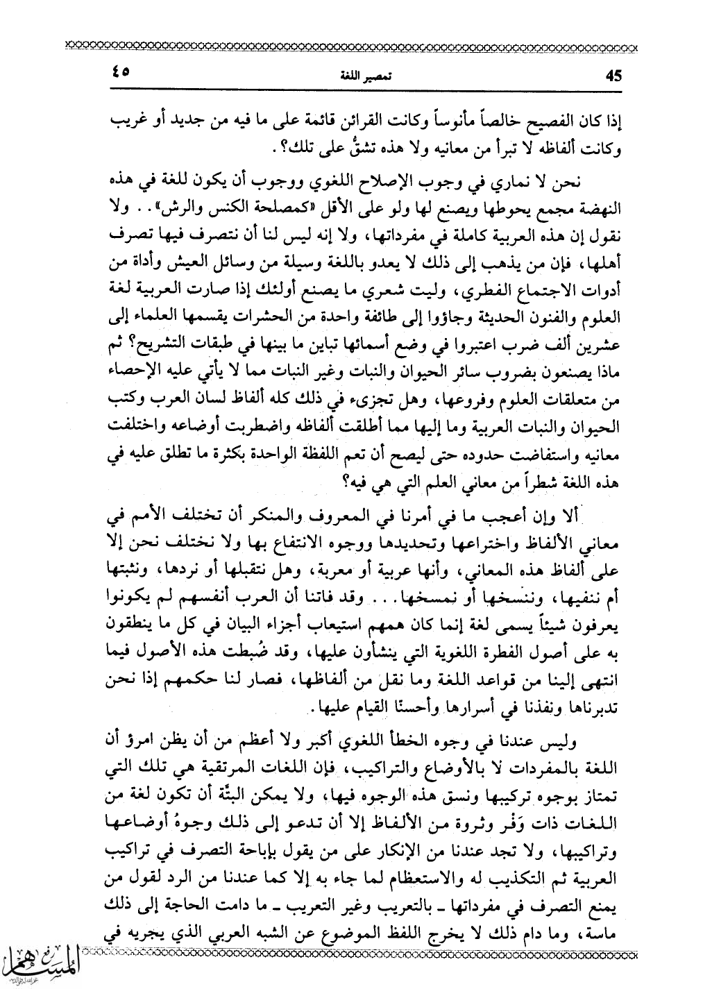 نحن لا نماري في وجوب الإصلاح اللغوي ووجوب أن يكون للغة في هذه