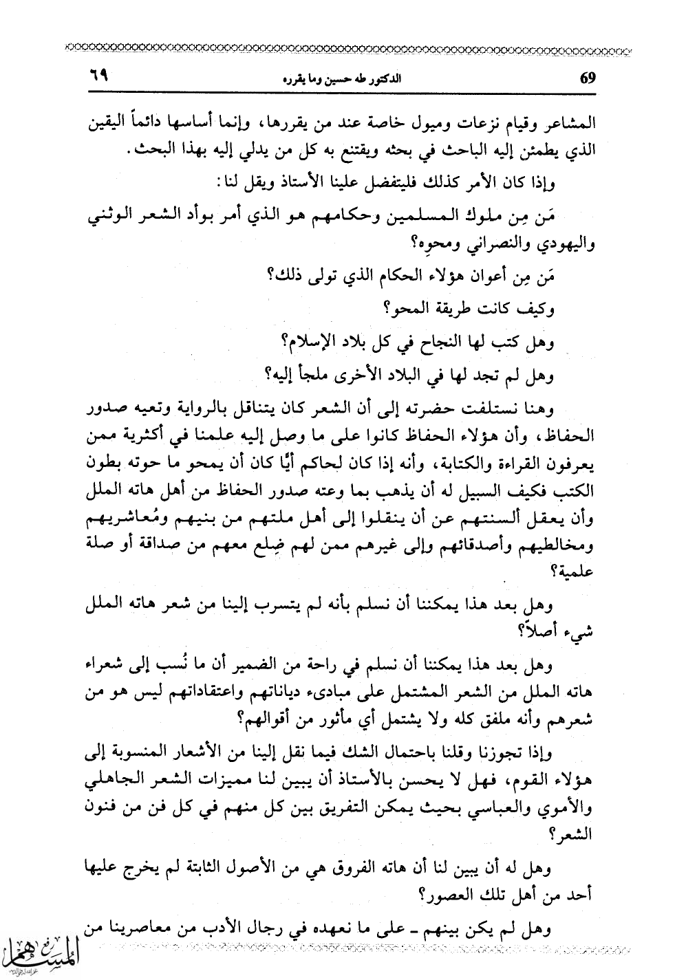 هؤلاء القوم، فهل لا يحسن بالأستاذ أن يبين لنا مميزات الشعر الجاهلي