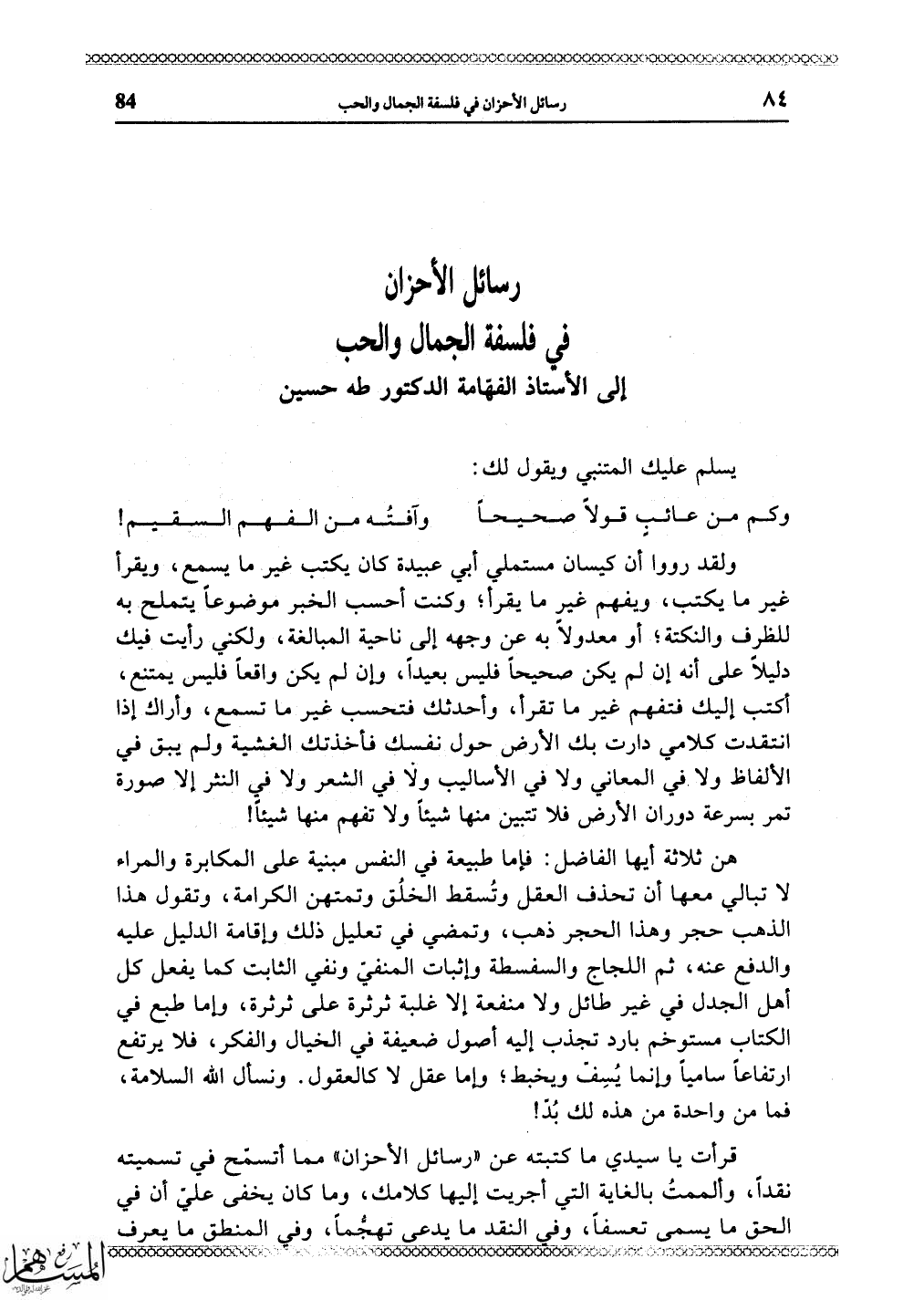 إلى الأستاذ الفهَّامة الدكتور طه حسبن