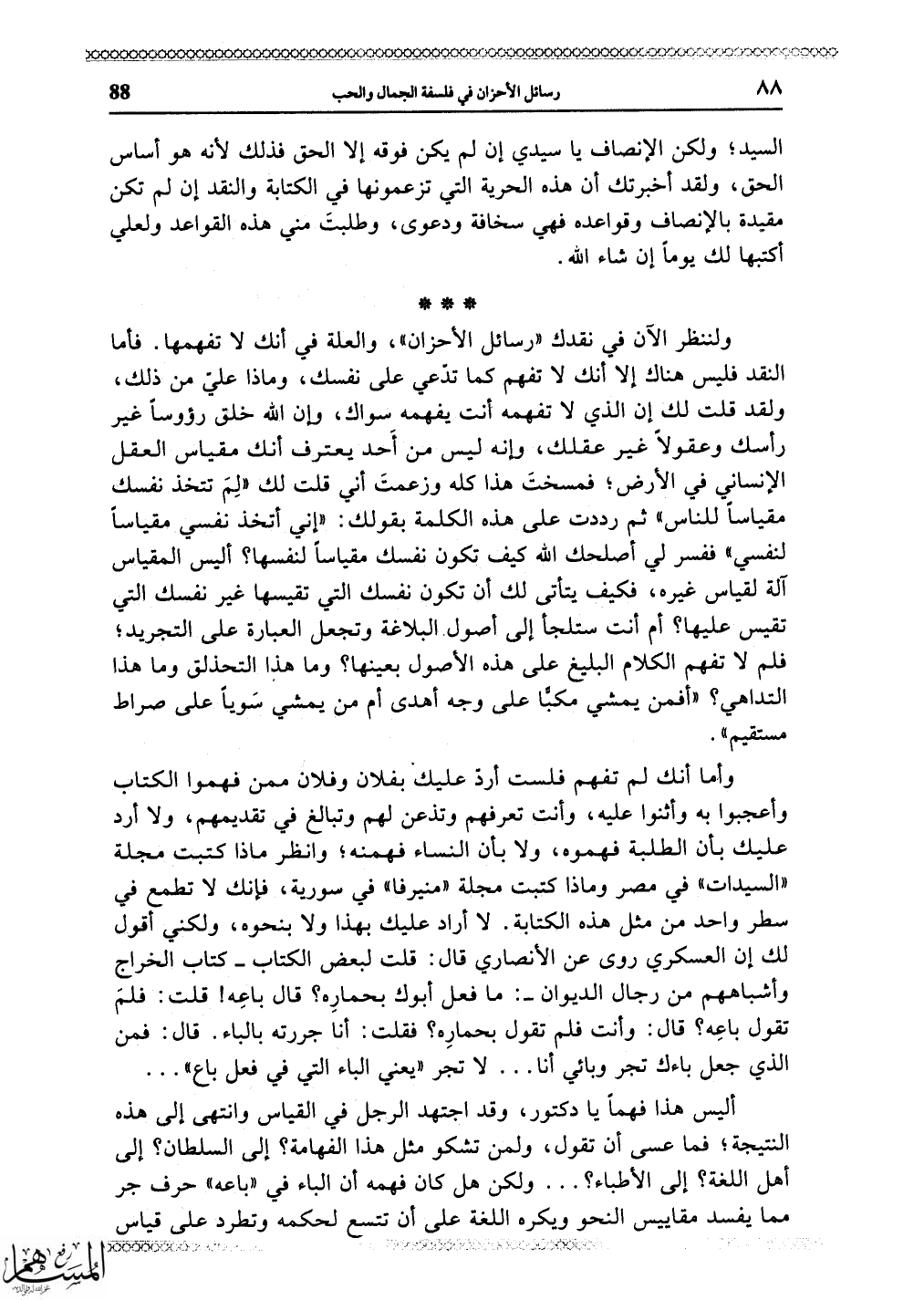 ولننظر الآن في نقدك "رسائل الأحزان"، والعلة في أنك لا تفهمها.
