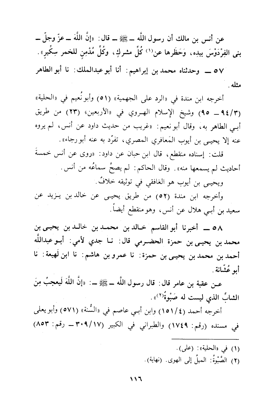 58 - أخبرنا أبو القاسم خالد بن محمد بن خالد بن يحيى بن محمد بن يحيى بن حمزة الحضرمي قال: نا جدي لأمي: أبو عبد الله أحمد بن محمد بن يحيى بن حمزة: نا عمرو بن هاشم: نا ابن لَهيعة: نا أبو عُشّانة.