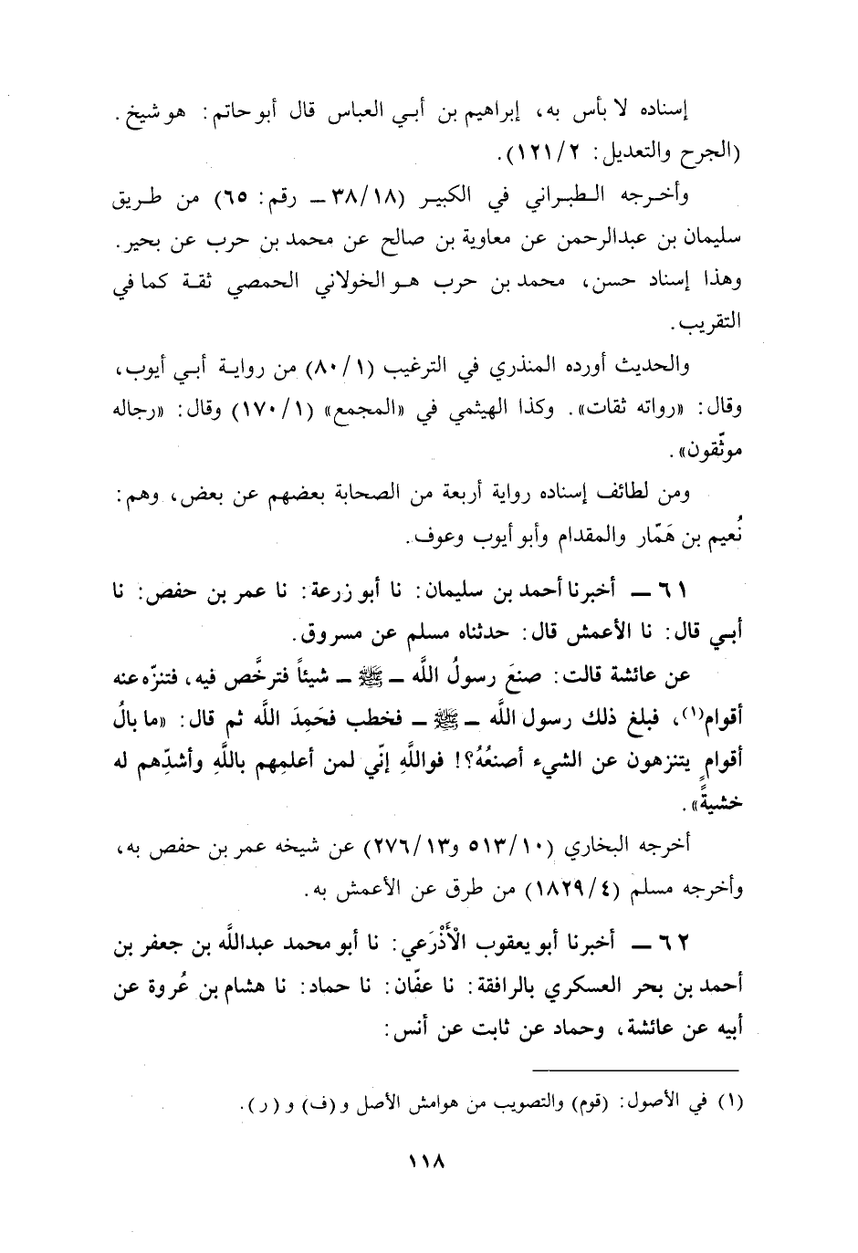 62 - أخبرنا أبو يعقوب الْأَذْرَعي: نا أبو محمد عبد الله بن جعفر بن أحمد بن بحر العسكري بالرافقة: نا عفّان: نا حماد: نا هشام بن عُروة عن أبيه عن عائشة، وحماد عن ثابت عن أنس: