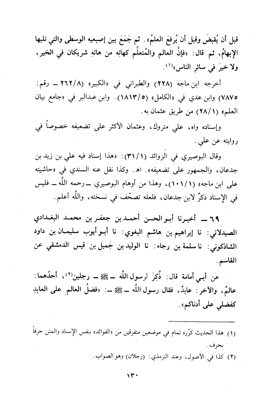 أخرجه ابن ماجه (228) والطبراني في "الكبير" (8/ 262 - رقم: 7875) وابن عدي في "الكامل" (5/ 1813). وابن عبد البر في "جامع بيان العلم" (1/ 28) من طريق عثمان به.